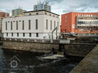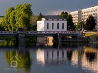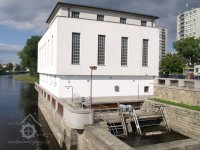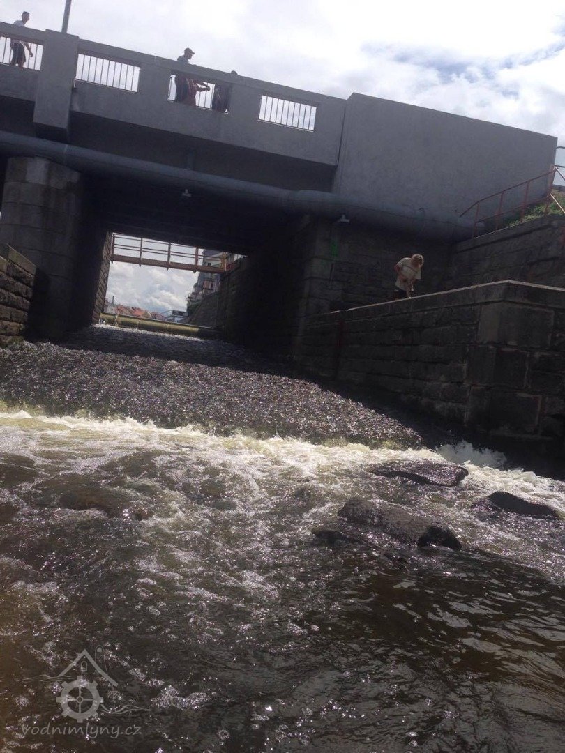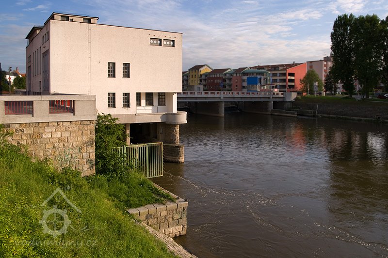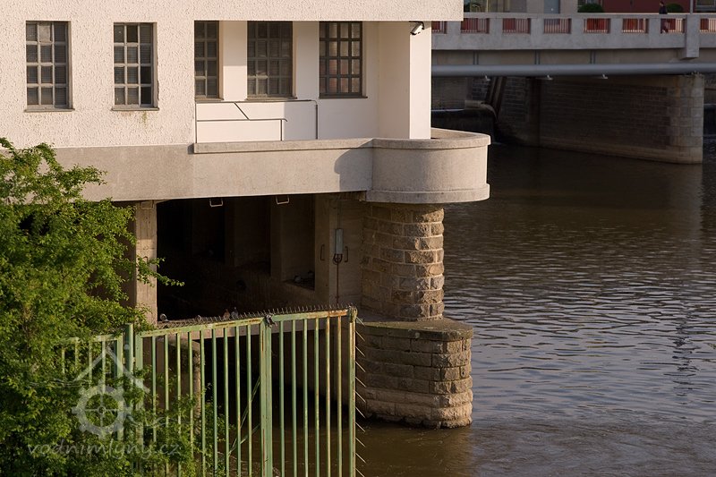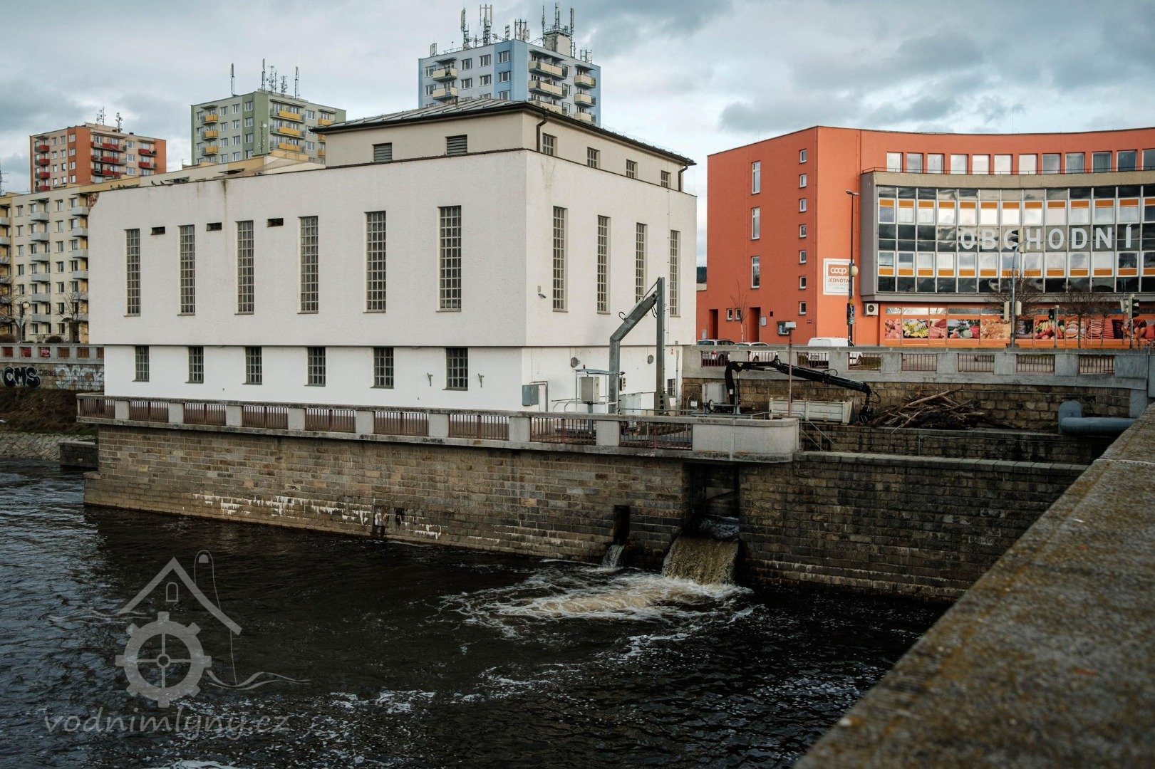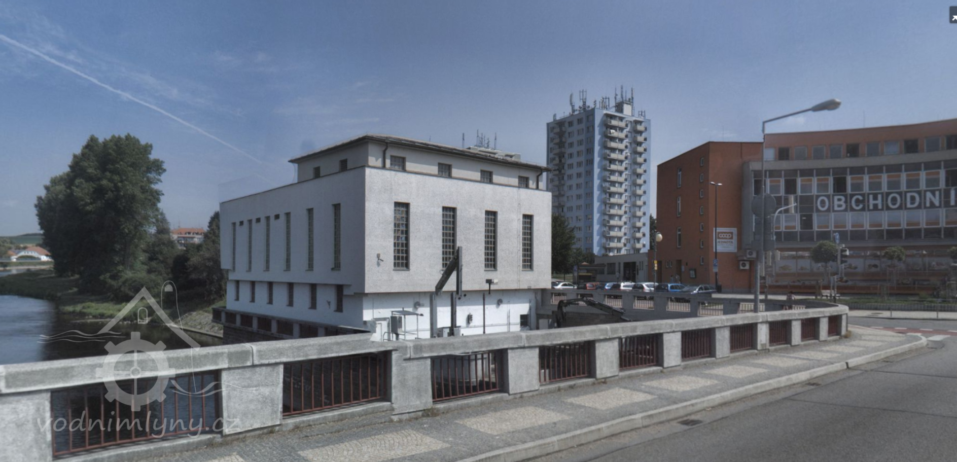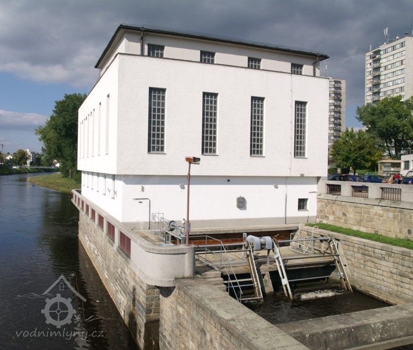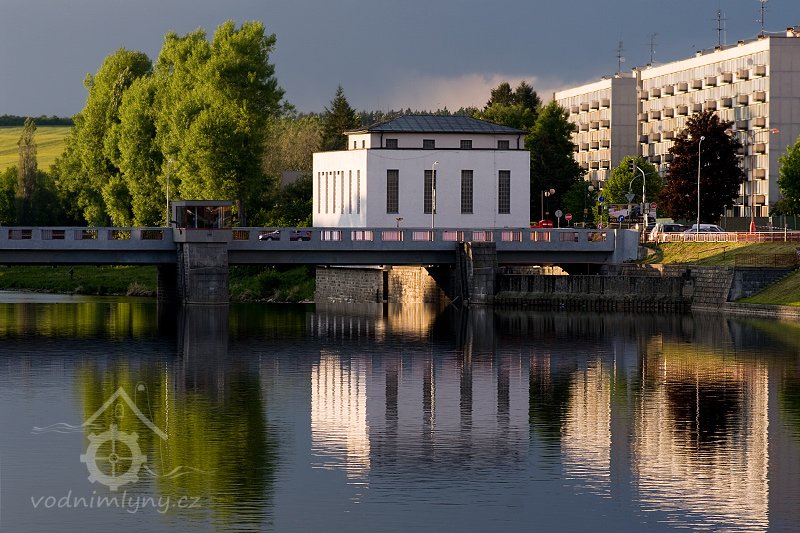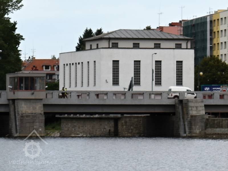 Součástí provozu mostu s válcovým jezem je na pravé straně elektrárna včetně náhonu a česel.