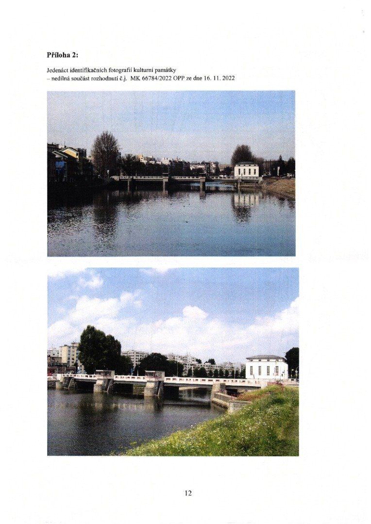 „Z našeho pohledu je v případě vlastního mostu s jezem stávající krok logickou nápravou právně vadného stavu z minulosti, kdy tak po celou předchozí dobu bylo k objektu přistupováno jako ke kulturní památce. Stran památkových hodnot lze tak bezpochyby souhlasit s názory obsaženými v závěrech NPÚ, včetně poukazu na unikátnost dochovaných technologií, jak jsou i součástí předloženého návrhu a v dané otázce proto nemáme k prohlášení za KP námitek.