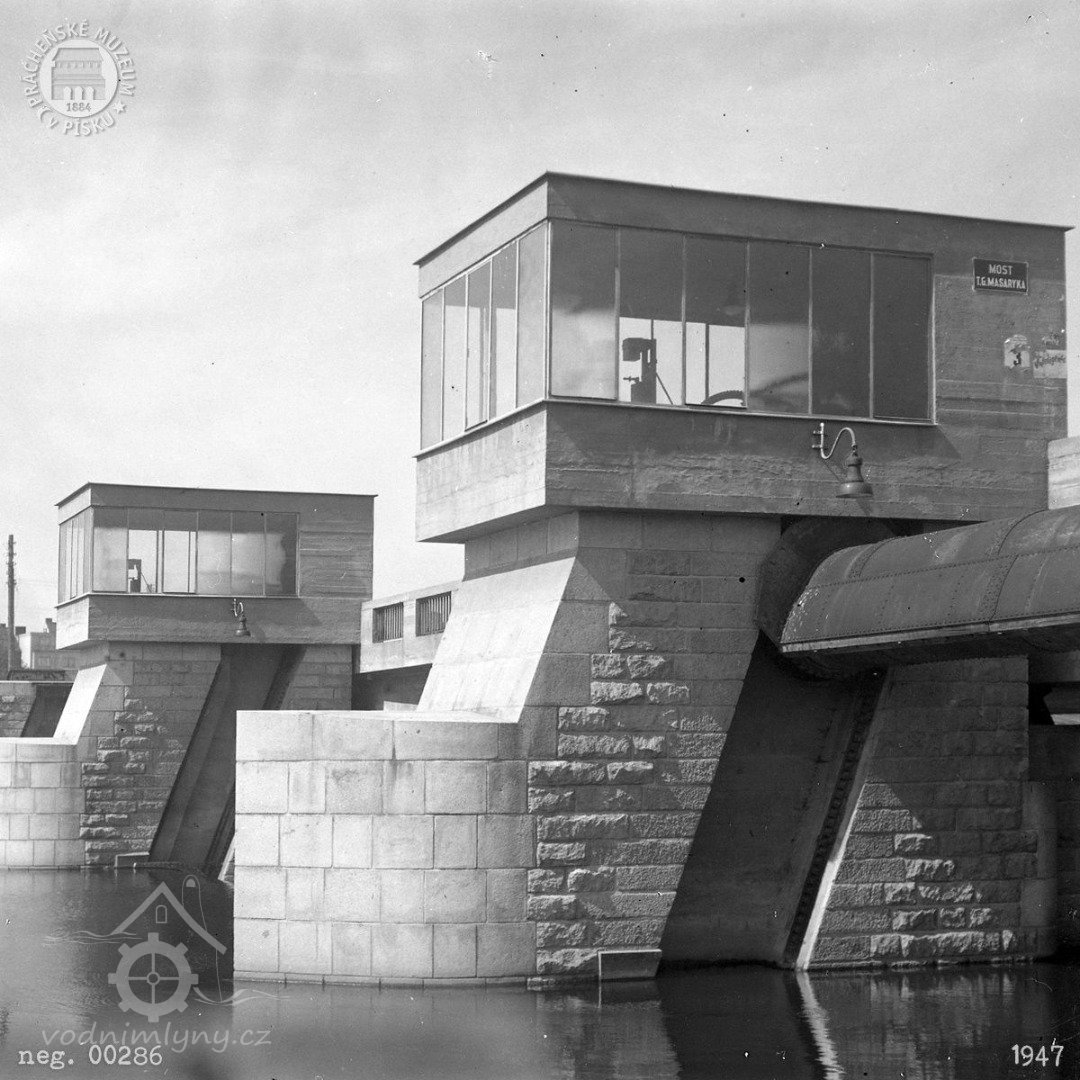 Silniční železobetonový most byl vybudován v letech 1938-1941 v souvislosti s regulací řeky Otavy. V letech 1939-1943 byl zbudován válcový jez, v roce 1946 s uvedením do trvalého provozu. Strojní zařízení vyprojektovala a dodala Českomoravská Kolben-Daněk akc. společnost.