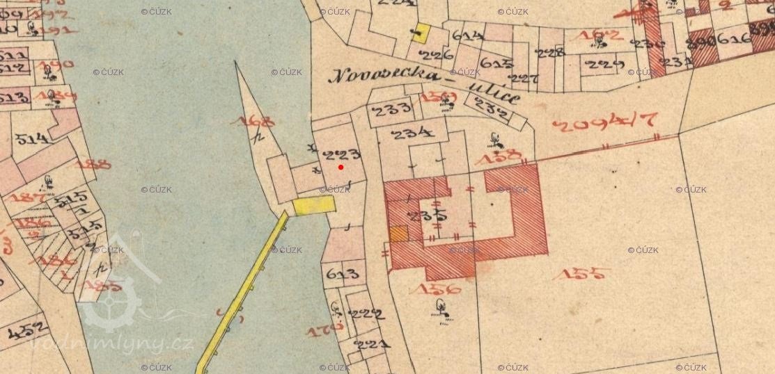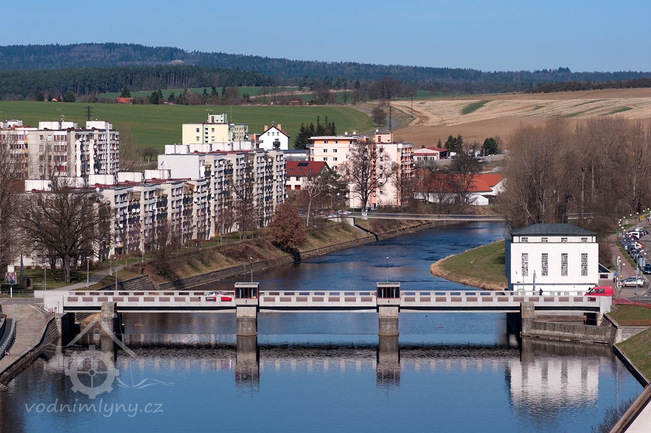 - pozemků pare. č. st. 2412 a pare. č. st. 7165, jejichž součástí je železobetonový silniční most č. ev. 139-000A (Nový most), podepřený čtyřmi kamennými mostními pilíři v řece Otavě a ukončený na obou březích nábřežními kamennými stěnami, přičemž na středových kamenných pilířích na návodní straně mostu jsou v úrovni vozovky dvě prosklené kabiny na ovládání jezu; na návodní straně v profilu mostu v jeho levém poli je propust, v jeho druhém, třetím a čtvrtém poli jsou umístěny pohyblivé válcové jezy a v jeho pravém poli je náhon s česly, provozně navazující na malou vodní elektrárnu