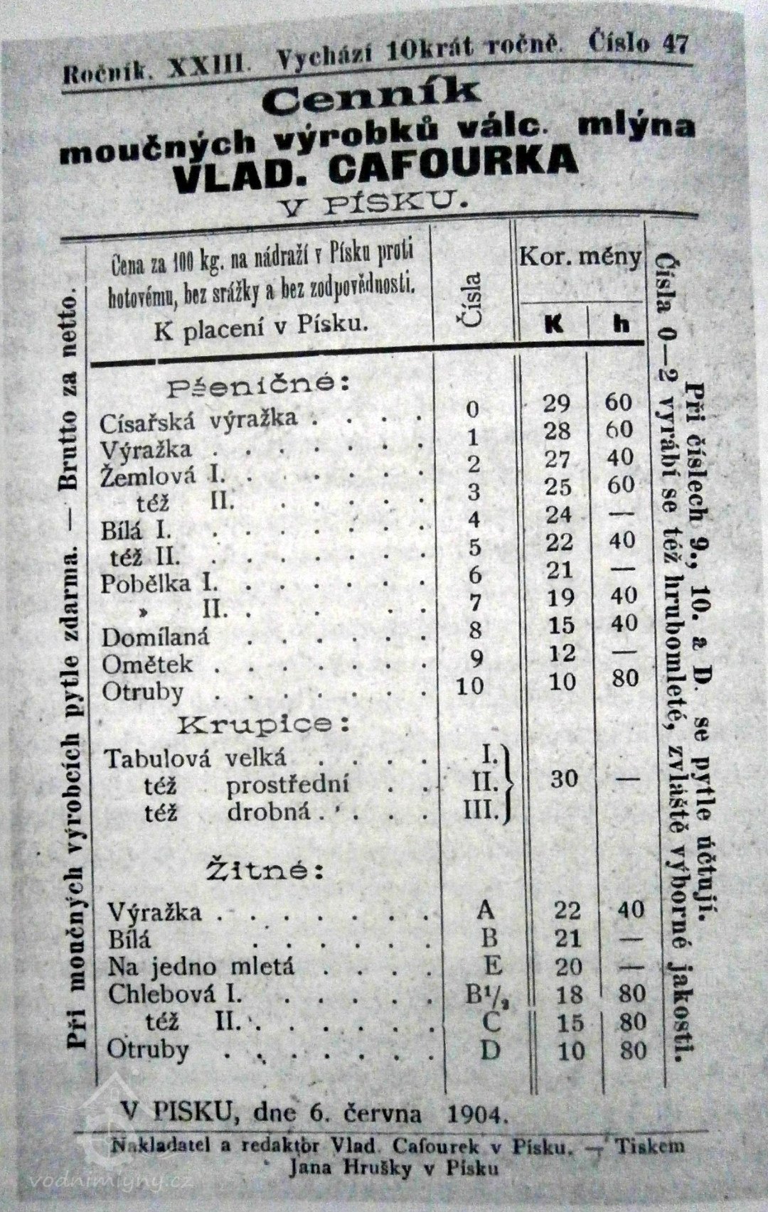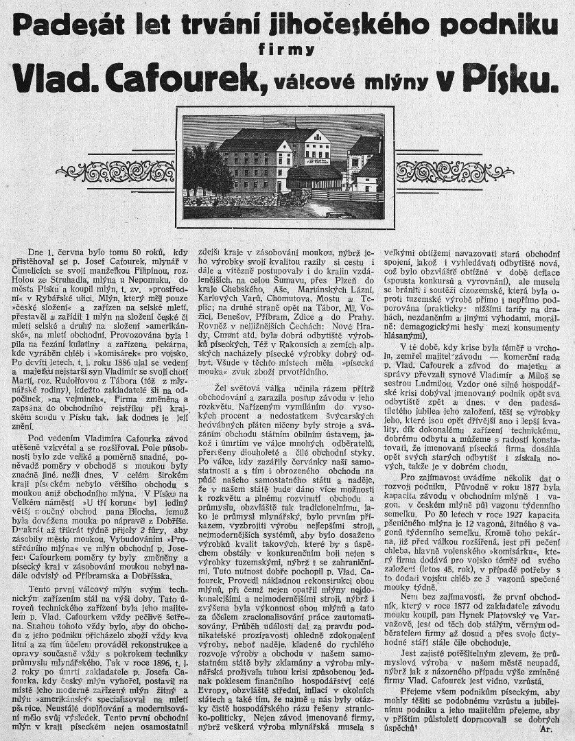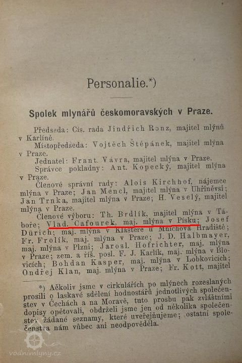 Malá vodní elektrárna byla zřízena na místě zbouraného Cafourkova mlýna v letech 1948 - 1951. Jejím autorem byl rovněž architekt Adolf Benš. (Cafourkův mlýn byl zbourán v roce 1939 v rámci regulace řeky Otavy).