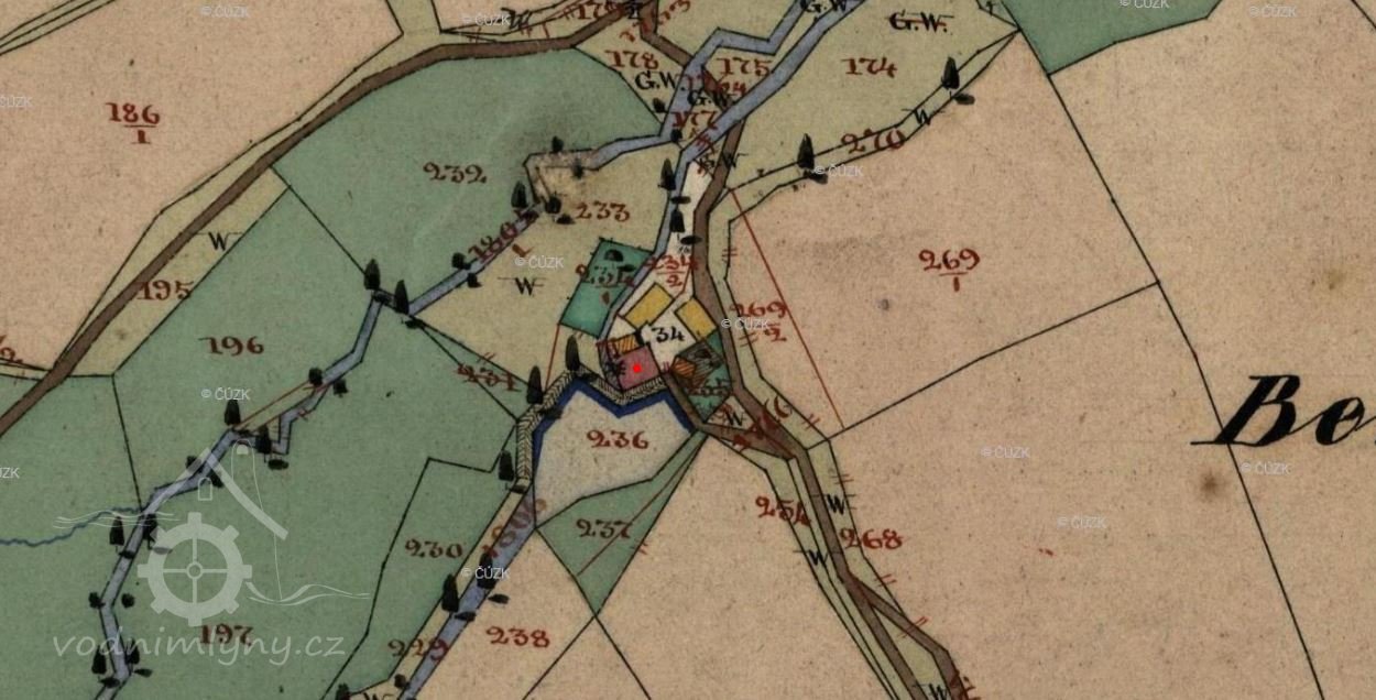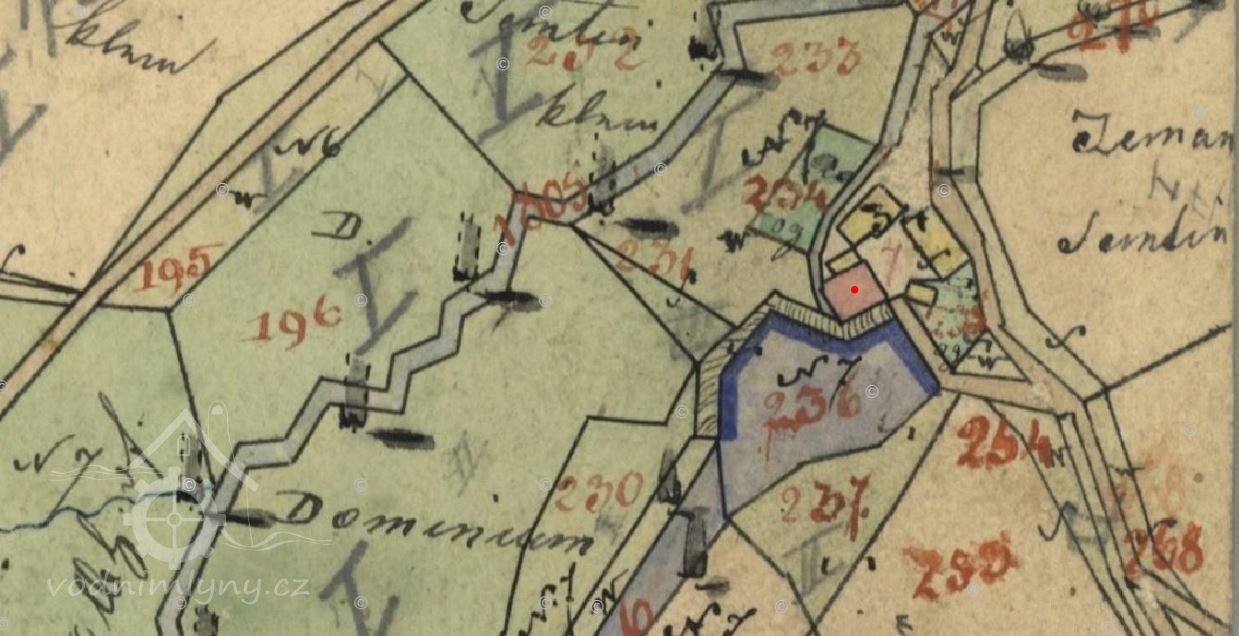 1713 Jan Šmerha a pak Kateřina Šmerhová, u mlýna 4 strychy a 2 věrtele polí a 1,5 strychu luk.