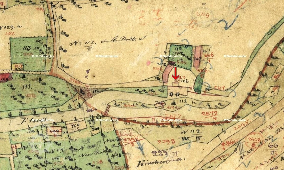 1810 o trojím složení s přistrkovací jahelkou se stájí, chlévy a stodolou a dalšími sytavbami, s polem, zahradami, paloukem, loukou a pastvištěm