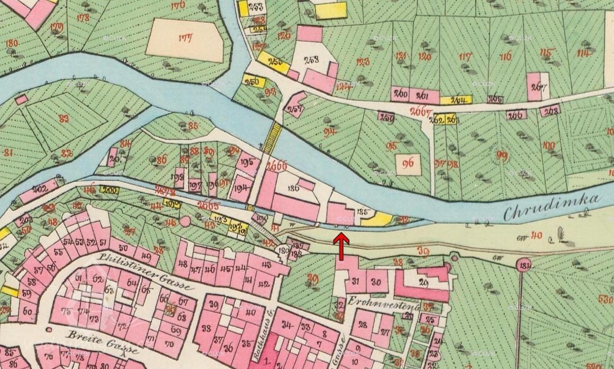 1819 při převodu součástí mlýna o 3 složeních i zahrádka, kapucínské valy, pár koní s postroji, kočár, 2 vozy a mlýnské nářadí, vše za 7.000 zl. víd.m.