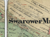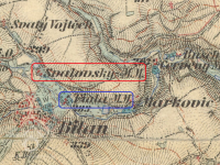 Svárovský (červeně) a Kleinerův (modře) mlýn, III. vojenské mapování, výřez, 1877-1880, © oldmaps.geolab.cz