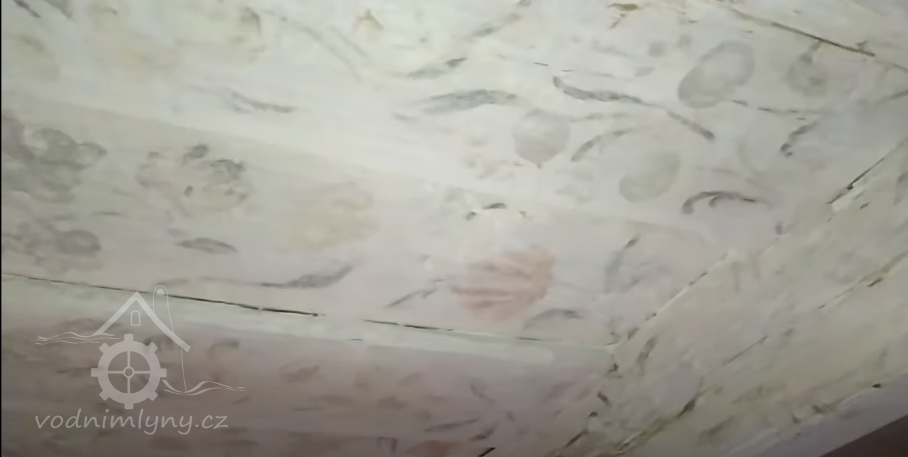 Malovaný záklopový strop, 2020, © you tube, (Prvky na obrázku: trámový strop, umělecké prvky (sochy, malby, reliéfy))