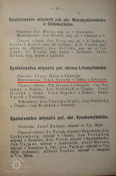 Roku 1727 koupil mlýn od svého otce Jana Václav Syrový za sumu 540 kop. Mlýn byl zcela zaplacen, a tak Václav musel pouze vyplatit z mlýna svou sestru Lidmilu sumou 270 kop.