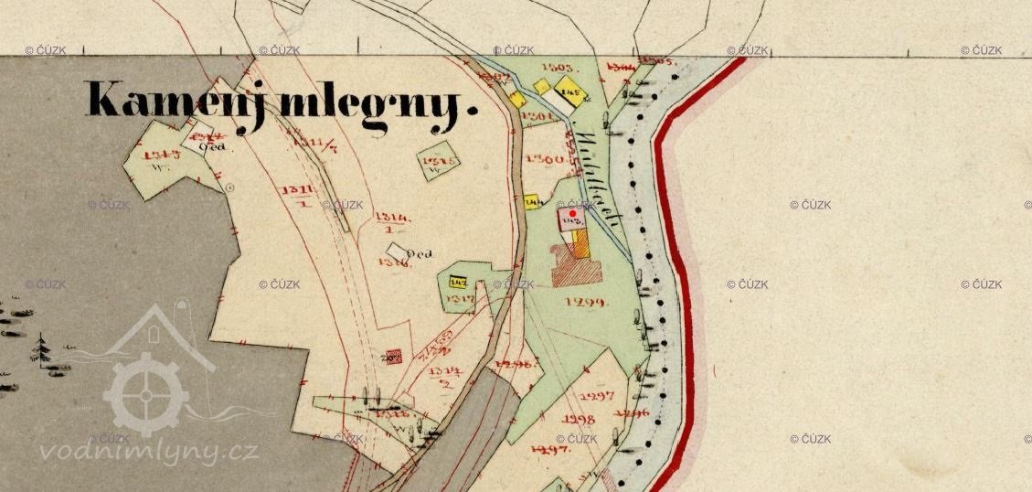 Jeden ze dvou mlýnů, které byly známy pod názvem Kamenné mlýny.