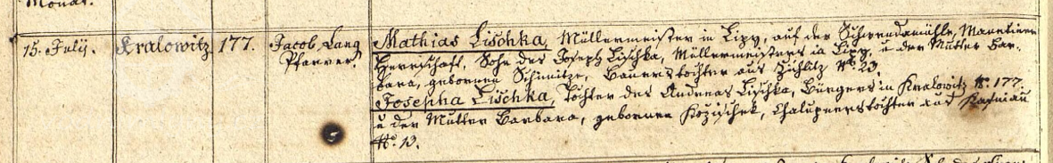 1772 Šimonu Gerstnerovi zemřela dcera a první žena, patrně na otravu námelem v mouce, 2. manž. Barbora roz. Vávrová.