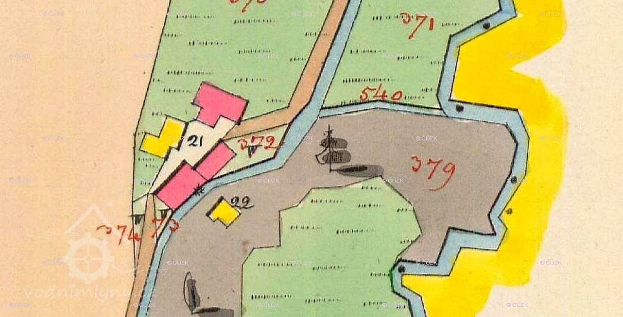 Mlýn měl ještě v roce 1930 dvě vodní kola na svrchní vodu.
