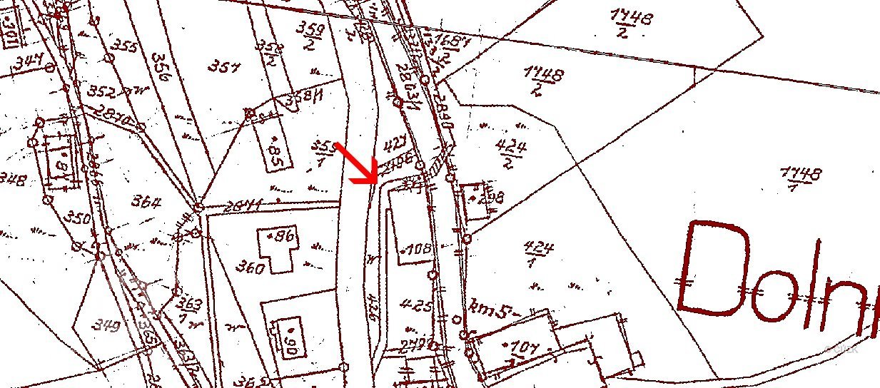 Mlýn se nachází téměř na konci katastru podél silnice zastavěné obce.