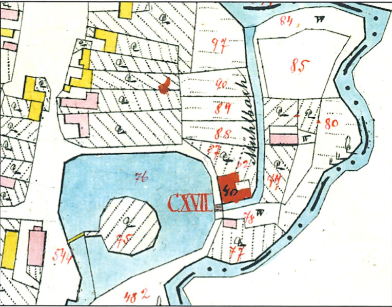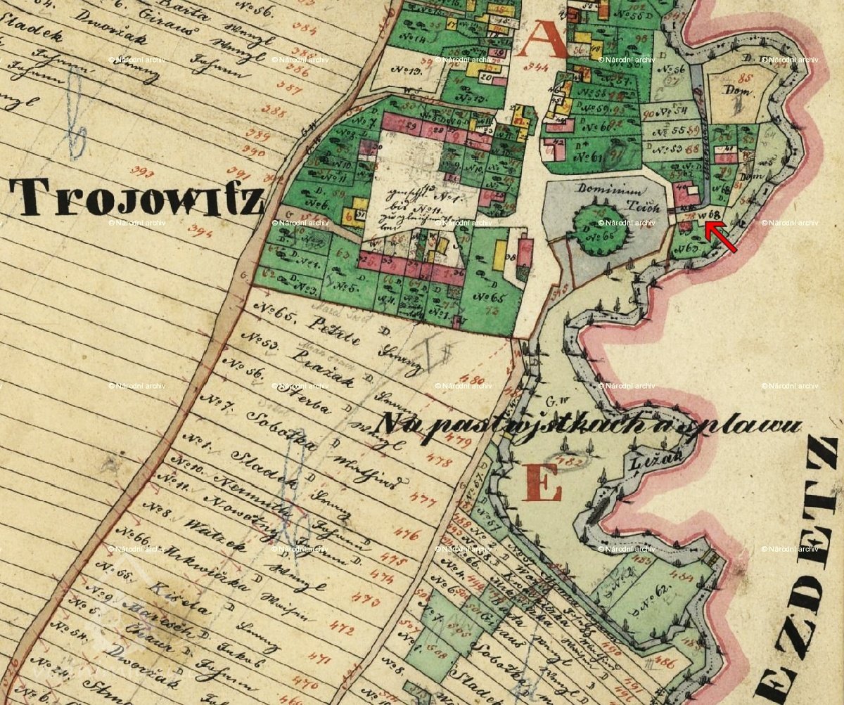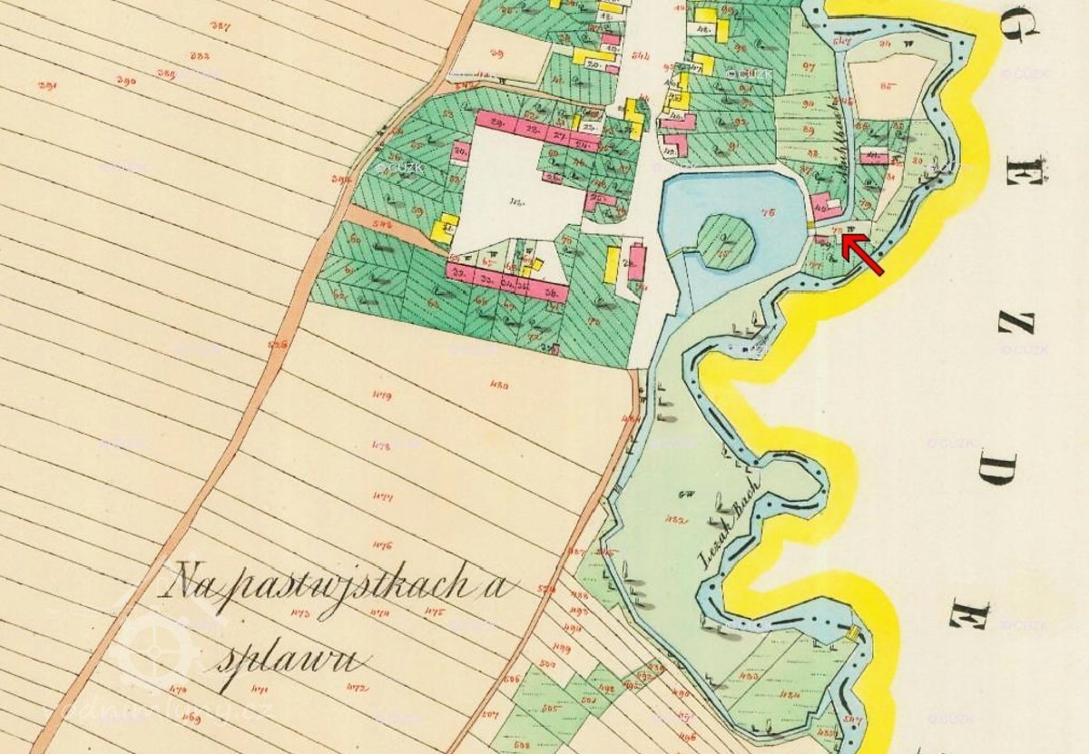 Vodní kniha také popisuje zdejší fix vodního práva: "Roku 1839 (28. 6.) byla 37,93 m od splavu u břehu při počátku ústí náhonu umístěna pilota se železnou tabulkou s nápisem: ´Za panování rytíře z Lilienswaldu´ a letopočet 1839."