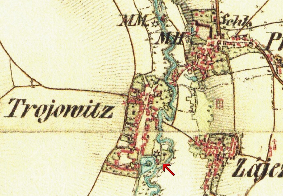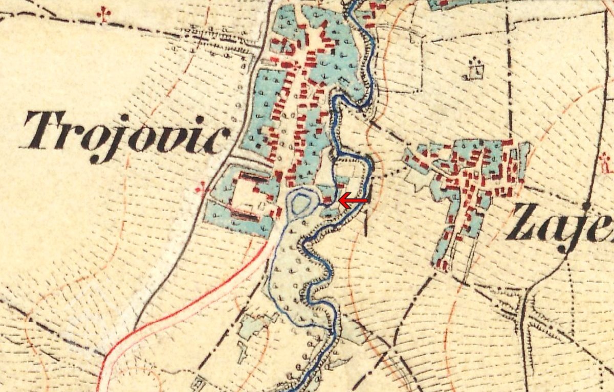 Mlýn je další ukázkou mlýna poblíž tvrze. "Trojovice patřily od roku 1551 Talackům z Ještětic. Jindřich Talacko přivtělil Trojovice k Týnci. Když zvýšil stav na řece tekoucí k Týnci, vyvedl ji z řečiště příkopem, který býval okolo tvrze trojovické (tvrz, archeologické stopy - nemovitá památka číslo 38907/6-4985) a vystavěl u příkopu tohoto mlýn." (A. Sedláček: "Hrady ... I.", str. 216).