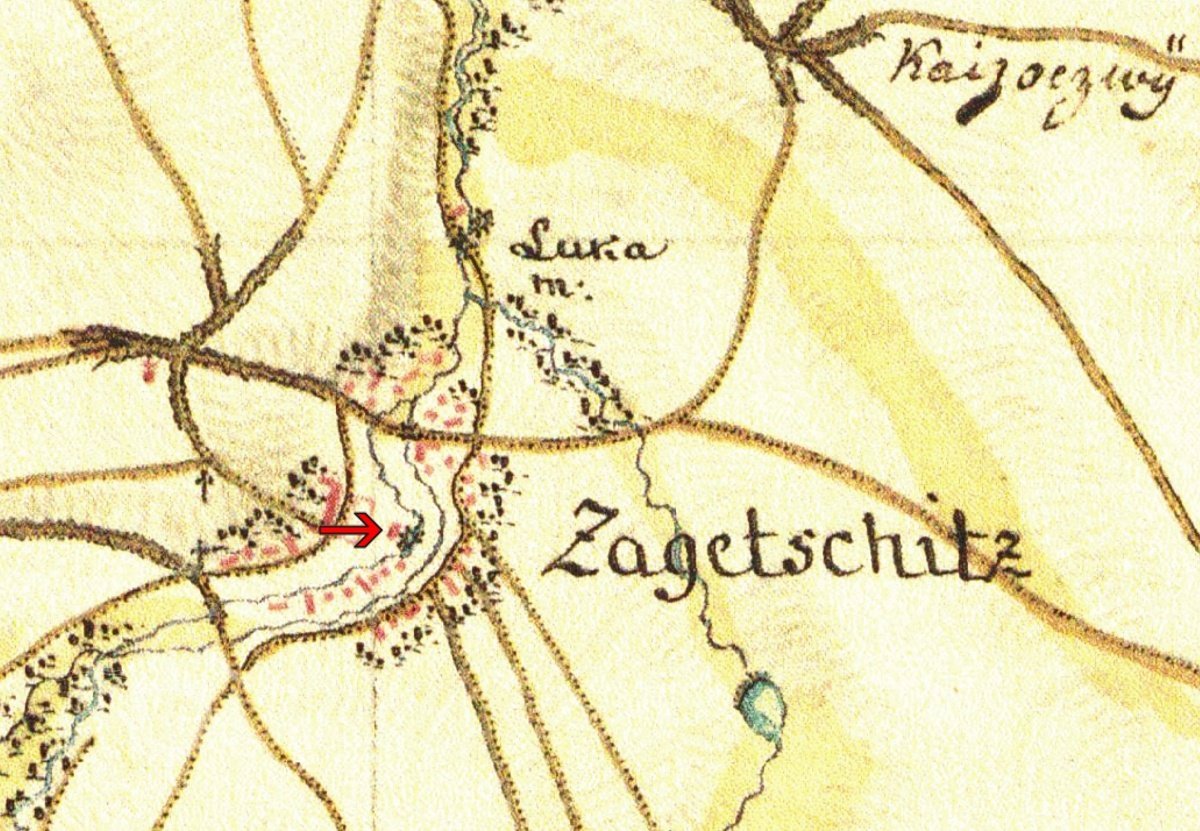 Vodní dílo skládající se ze splavu nad vsí, náhonu a Veského rybníka bylo pravděpodobně součástí opevnění středověké tvrze nedaleko mlýna a tvořilo významný prvek celého sídla. Mlýn stál pod starší zaječickou tvrzí tedy pravděpodobně od středověku ...