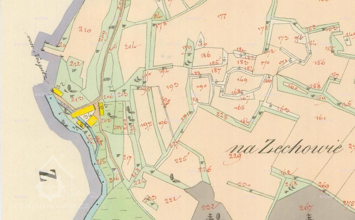 PopisV roce 1930 mlýn pohánělo 1 kolo na svrchní vodu, průtok 0.12 m3/s, spád 3.5 m, výkon 3.4 HP