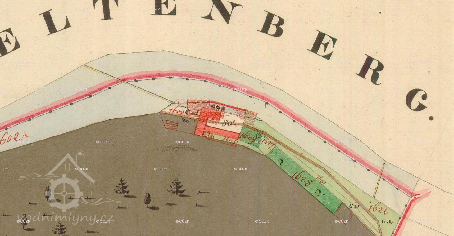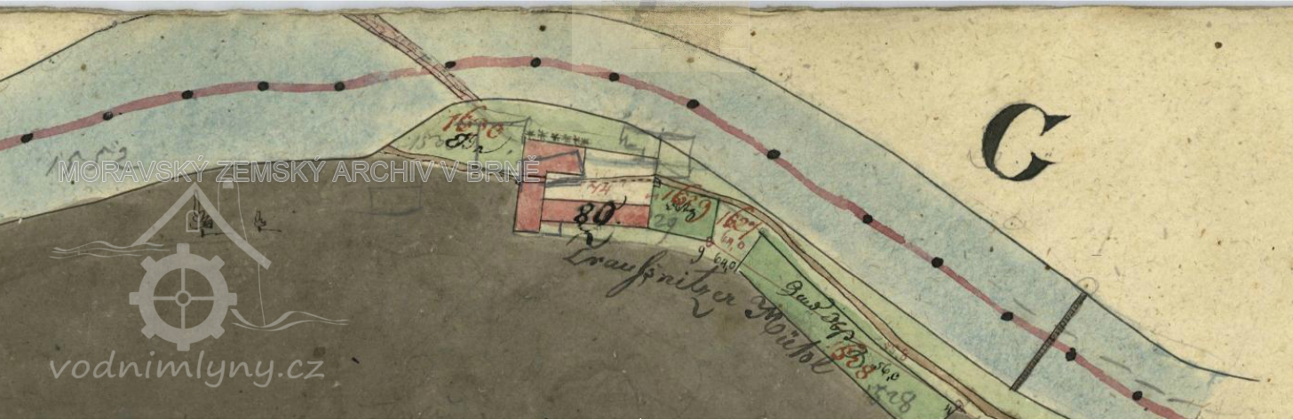 Velký a výstavný mlýn zaniklý v důsledku zbudování vyrovnávací nádrže Znojmo.