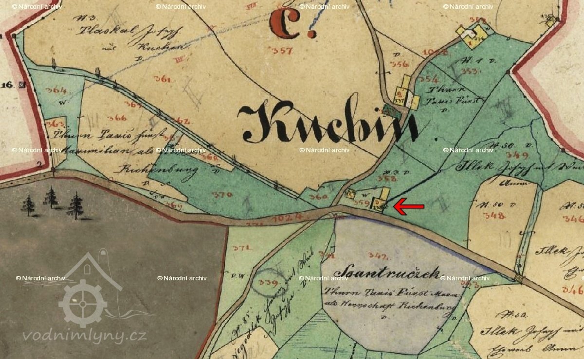 V roce 1930 je zde uváděn v seznamu vodních děl mlynář Antonín Vodička, mlýn a pila.