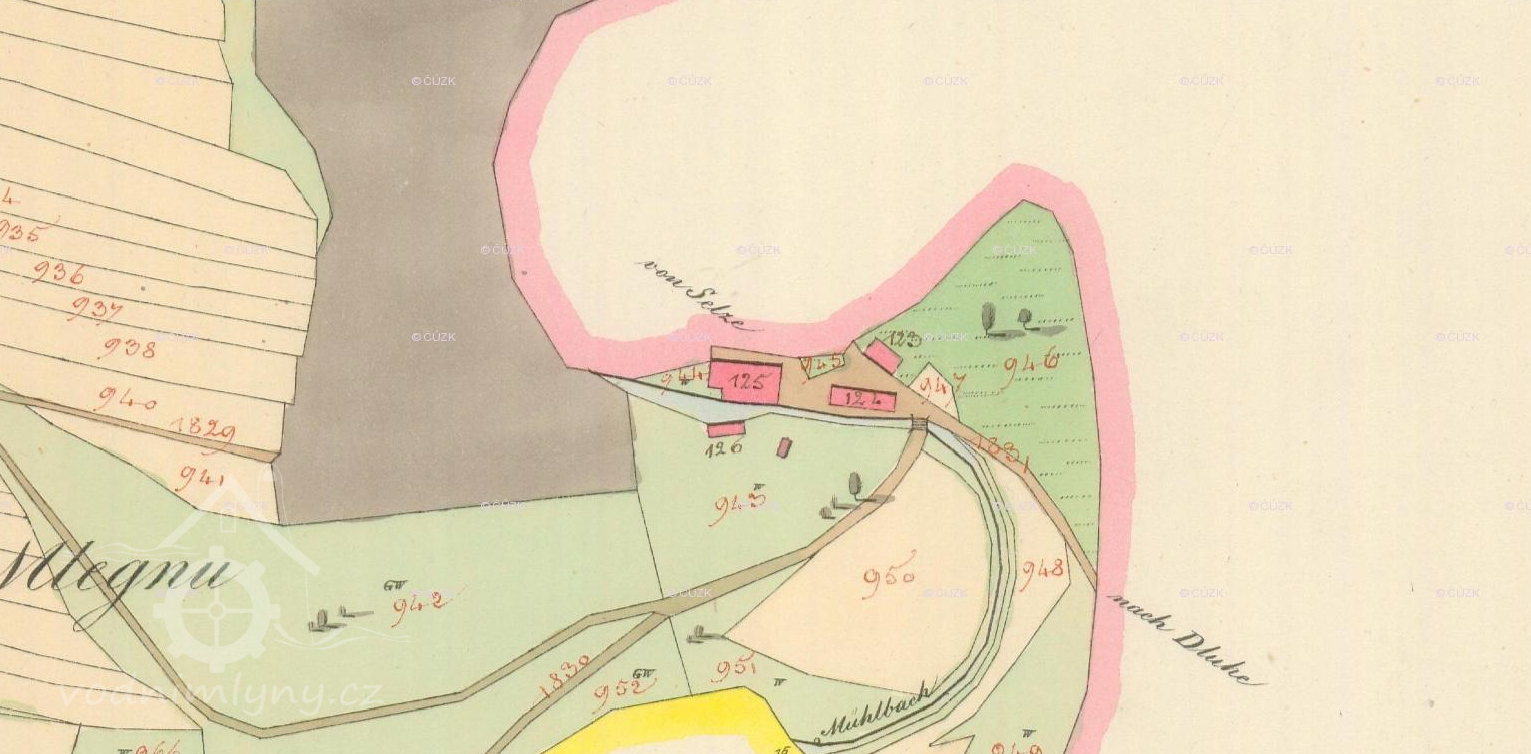 Mlýn zaniklý v důsledku výstavby přehrady Římov.