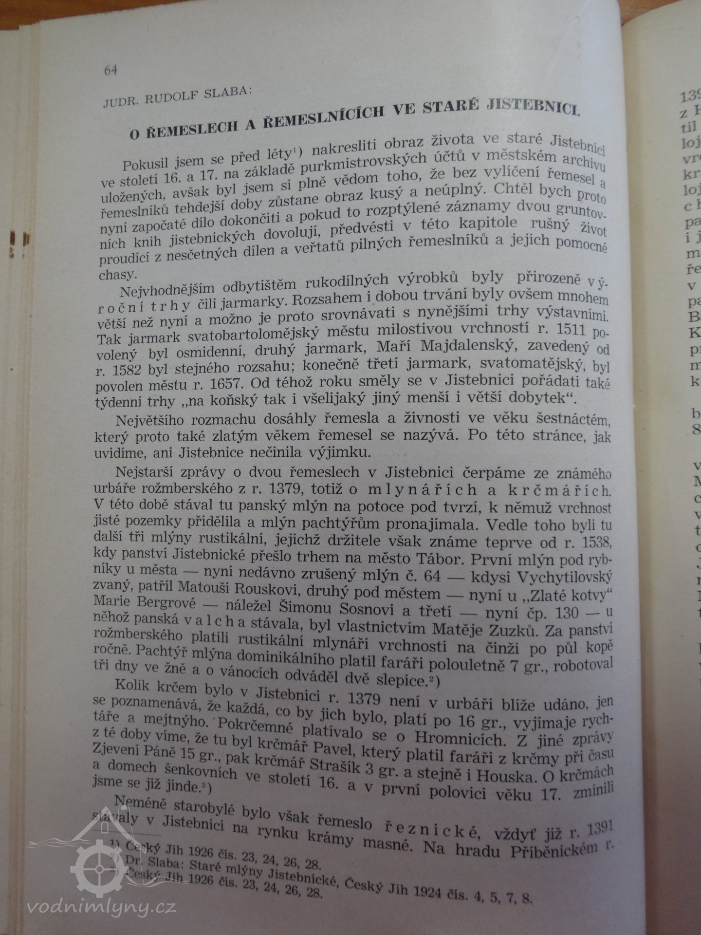 Staré mlýny jistebnické; ČESKÝ JIH, roč.52/1924