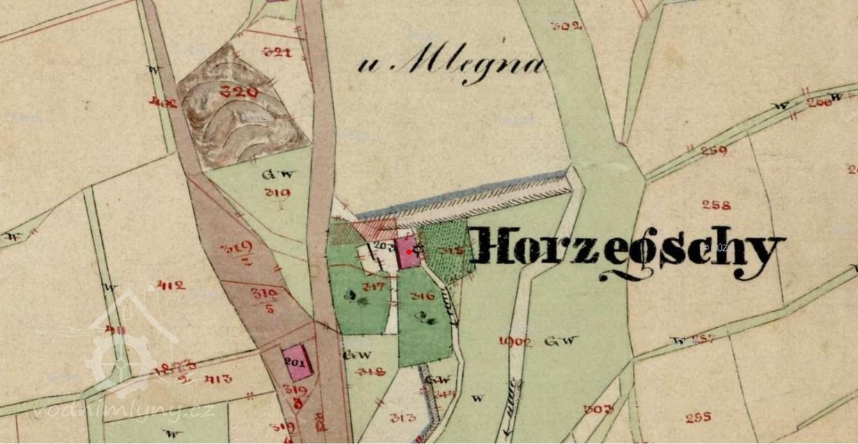 Popis19302: 1 kolo na svrchní vodu, hltnost 0,183 m3/s, spád 5,05 m, výkon 8 HP