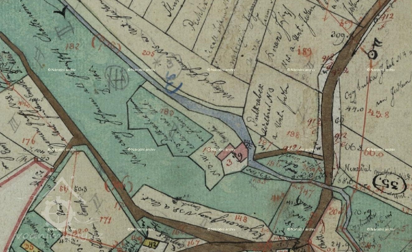 Osada: Jedlany, Vřeský potok, mlýn čp.3 na levém břehu