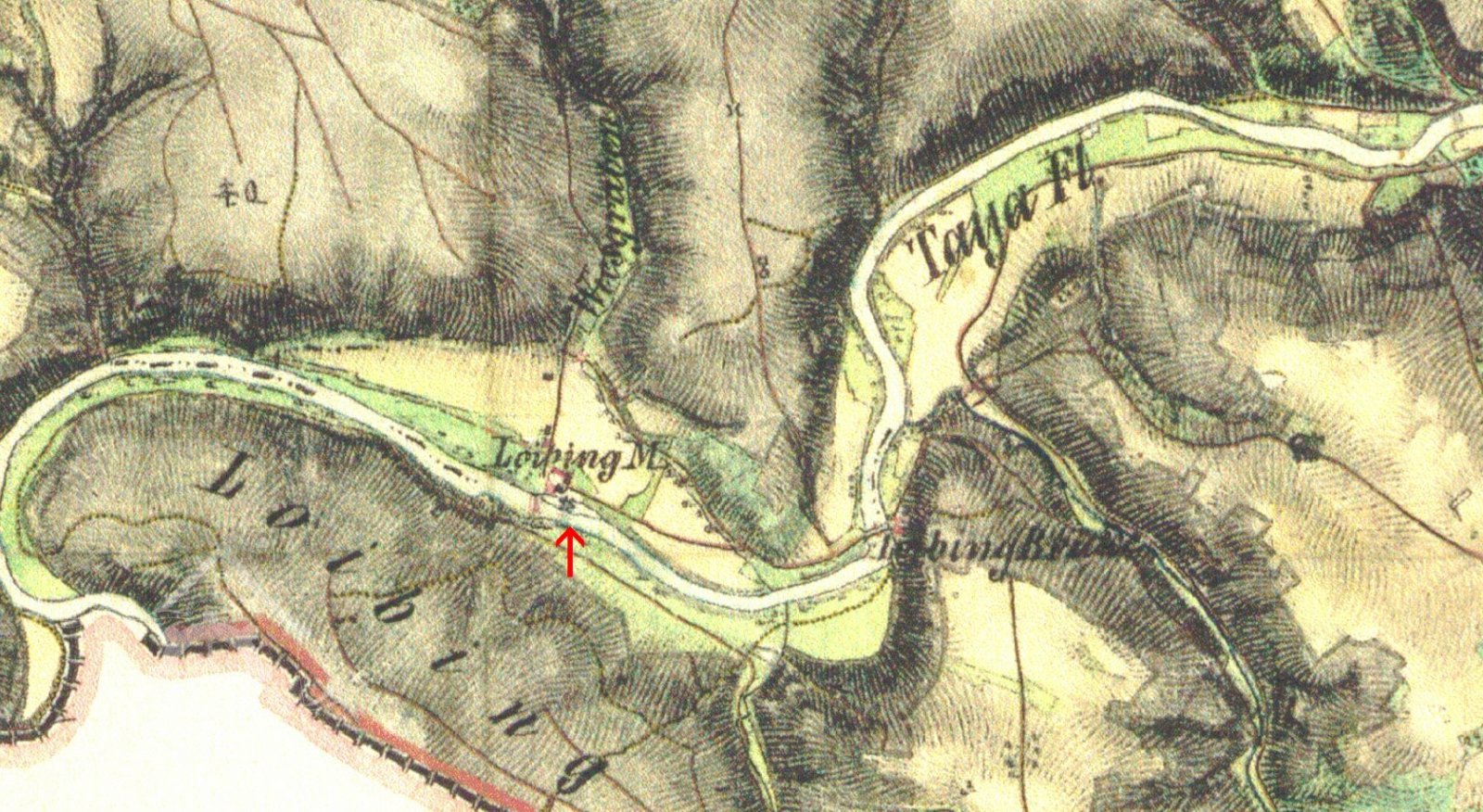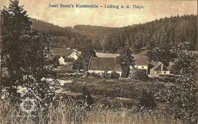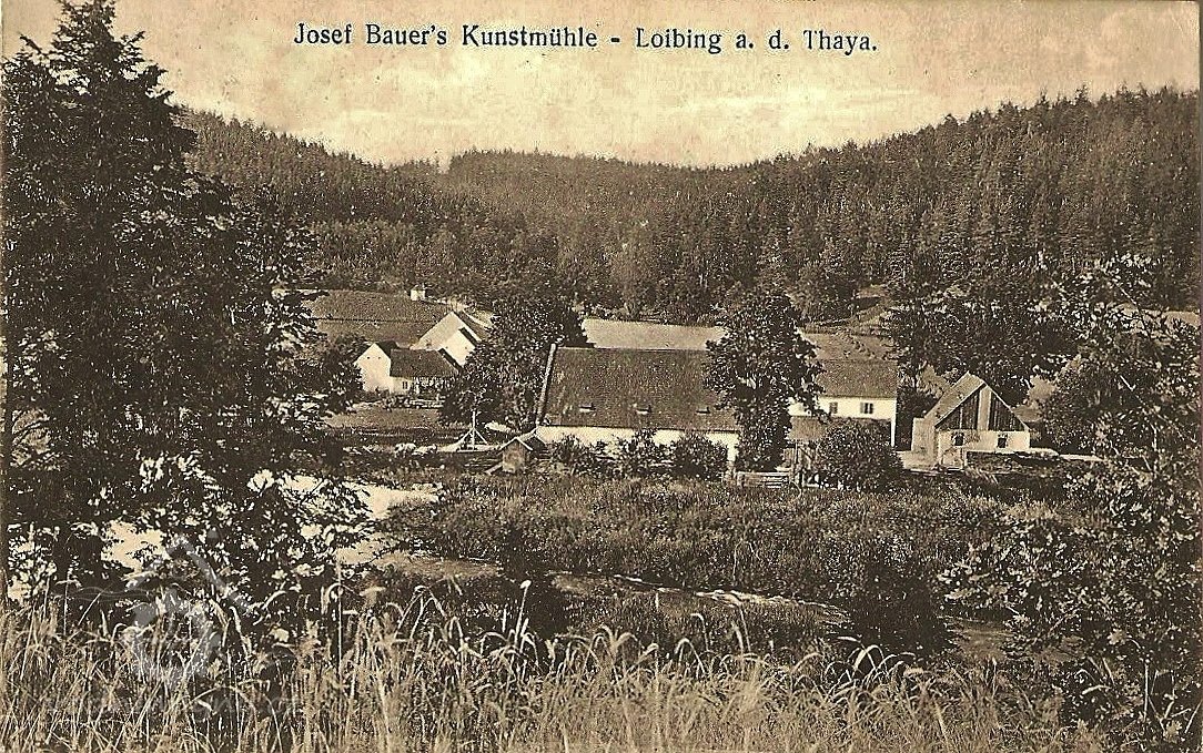 Libuňský mlýn stával u prvního moravského mostu přes Dyji a nesl jméno podle německého pomístního názvu „Loibing“ zachyceném na prvním vojenském mapování.[48] V roce 1887 je uváděn mlynář Eduard Bauer.[49] Firmu „mlýn s pilou“ si nechal v roce 1888 zapsat Edmund Bauer, který ji držel až do smrti v roce 1892.[50] Mlýn s pilou po něm zdědila manželka Katharina Bauer a v roce 1893 firmu převzal syn Josef Bauer.[51][52] Po Josefovi vlastnil mlýn s pilou až do své smrti v roce 1915 Edmund Bauer.[53] Ve 30. letech provozoval Emmerich Bauer k mlynářské živnosti také mechanickou dílnu.[54] Za první republiky byl spolumajitelem mlýna Anton Kiesling, pocházející z mlynářské rodiny na mlýně v Unterthürnau. Karl Kiesling zdědil po otci Ferdinandu Kieslingovi mlýn v Unterthürnau a oženil se v roce 1929 s Johanou Bauer, dcerou Josefa Bauera mistra mlynářského z Libuňského mlýna (Loibing-Mühle). Za svědky mu šli Adalbert Bauer řezník z Frejštejna a Anton Kiesling spolumajitel mlýna Loibing-Mühle a mistr mlynářský (na Loibingu uváděn už v roce 1926).[55][56]    Wikipedie                                                         jb.