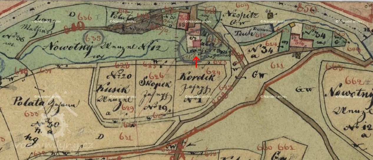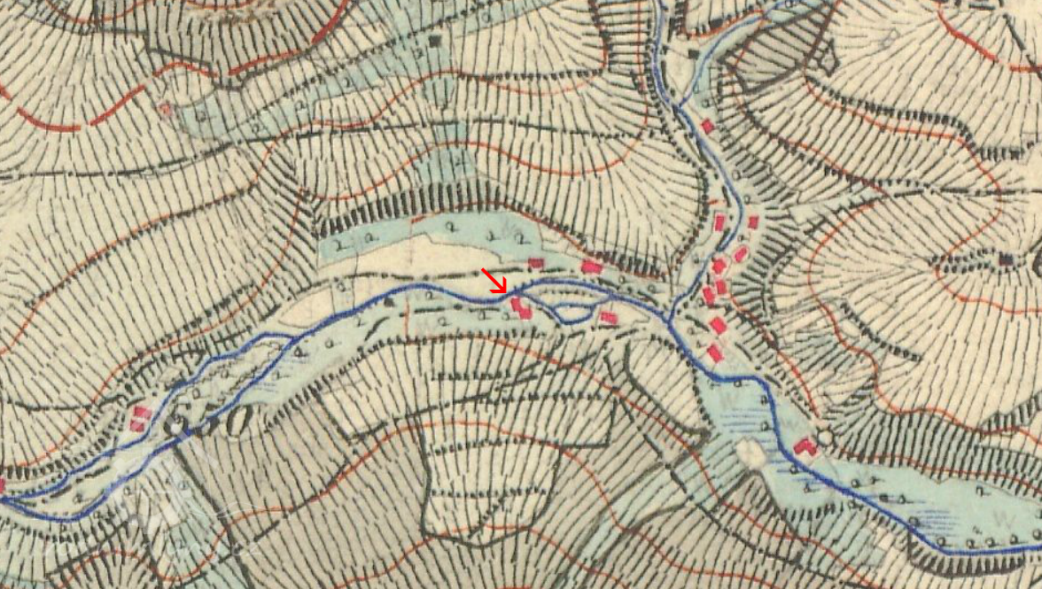 Na IS je ke stojící budově hospody dodatečně dokreslena mlýnice.