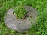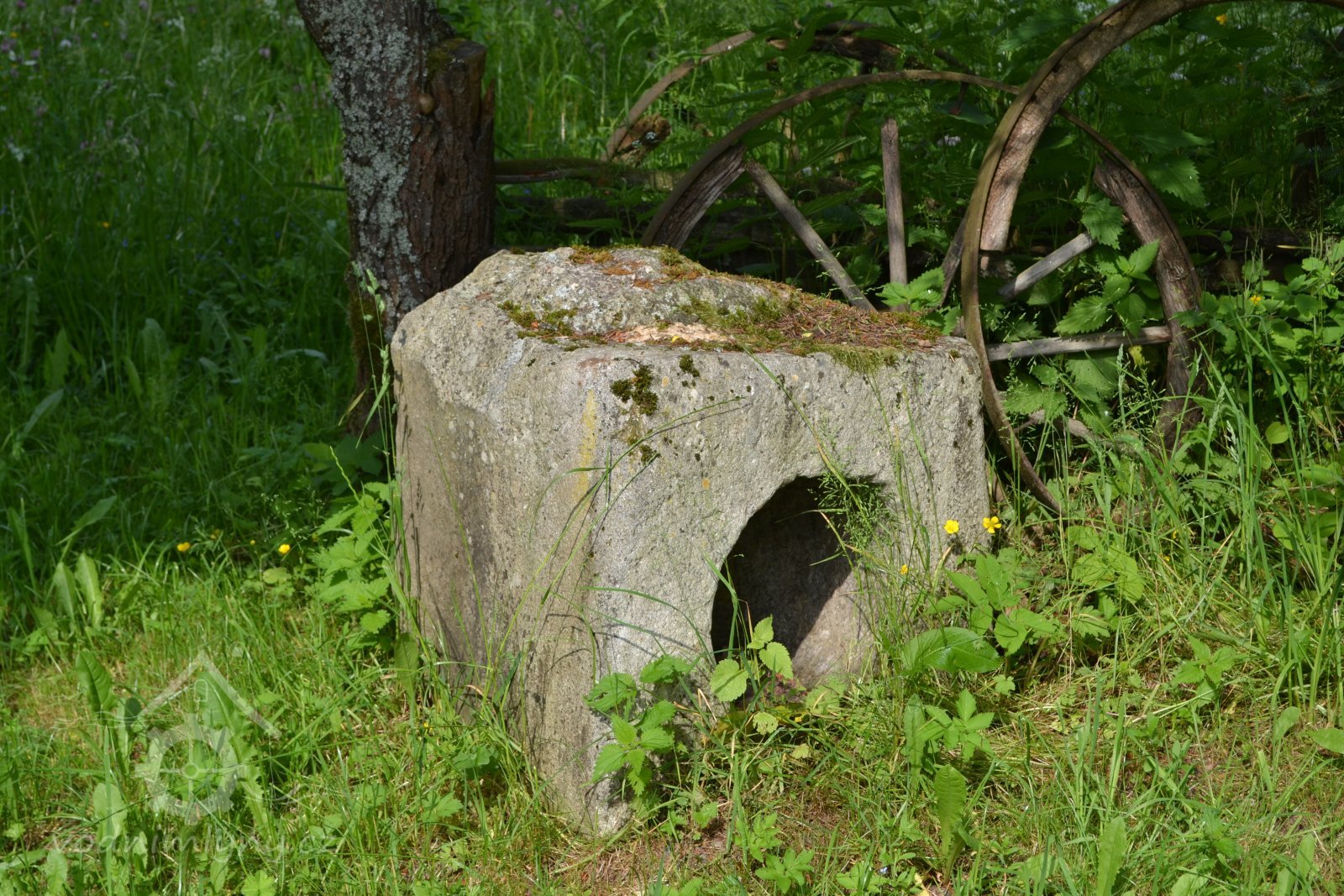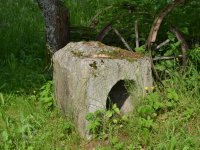 U mlýna se dochoval kamenný štok kladivové stoupy.