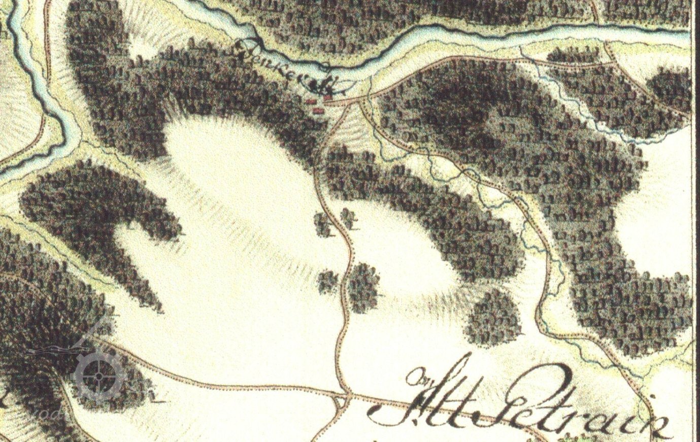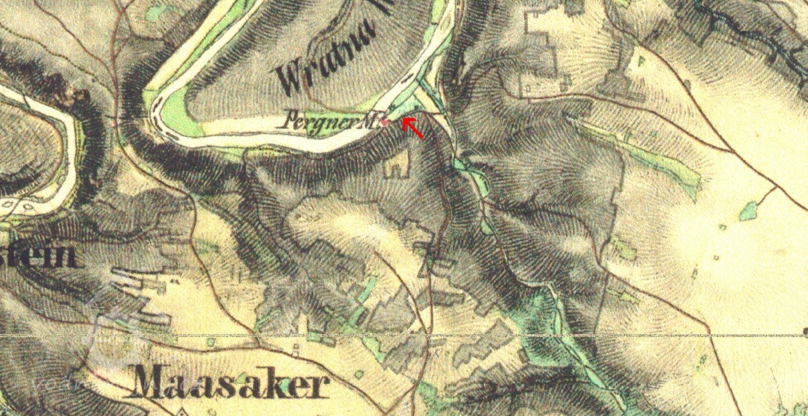 Mlýn se nacházel západním směrem od Starého Petřína u řeky Dyje.