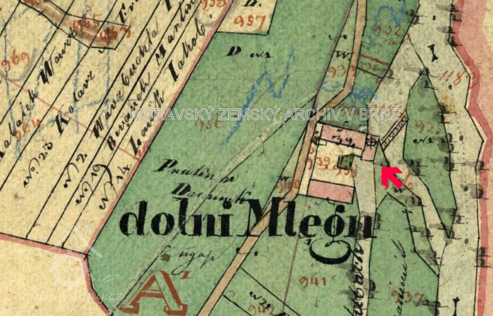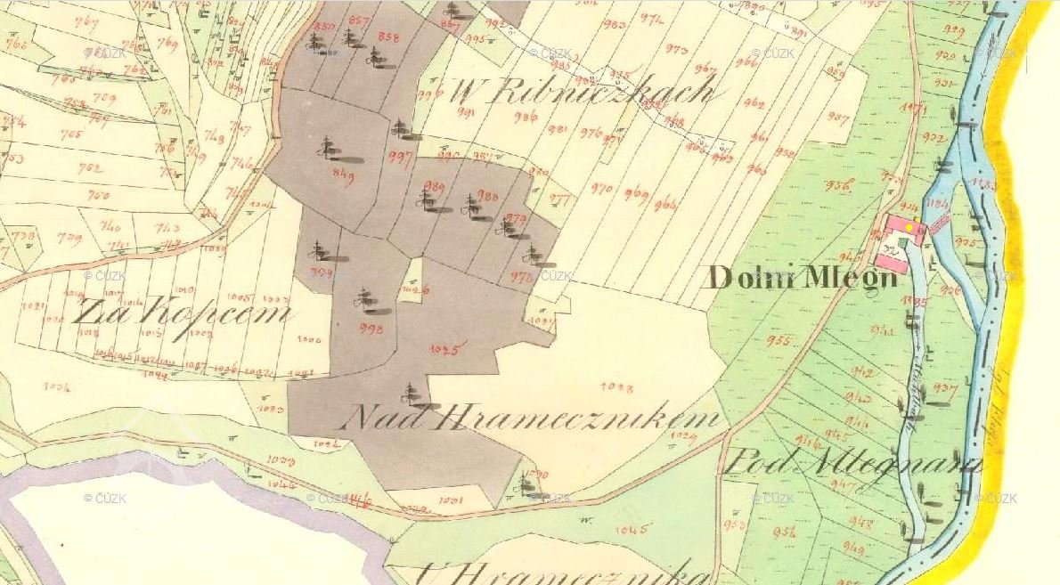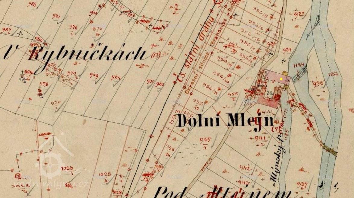 Mlýn je zachycen již na mapě I. voj. mapování.