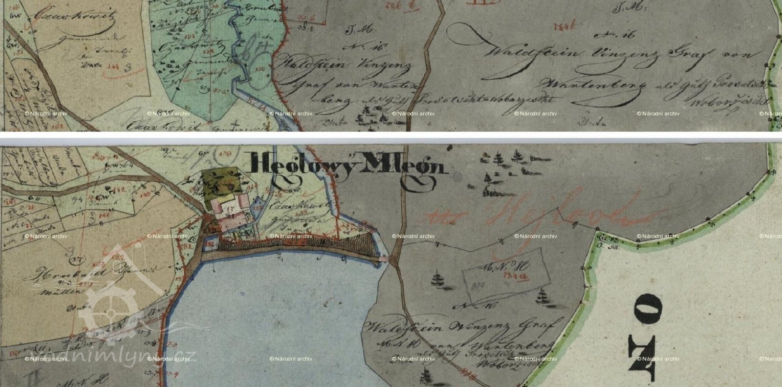 V dokladech z devatenáctého století se dozvíme, že tehdy bylo v mlýně pět vodních kol. Každé z nich pohánělo jeden stroj. Byly zde dvě mlýnské stolice, jednolistová pila, šindelka a krupník. Když bylo potřeba spustit určitý stroj, pustila se voda na to kolo, s nímž byl spojen. V roce 1901 proběhla velká rekonstrukce a modernizace. Dosavadních pět kol bylo nahrazeno dvěma většími a ve sklepě mlýnice byla instalována asi 30 metrů dlouhá transmise, kterou kola společně roztáčena. Z ní se síla vody přenášela na jednotlivé stroje pomocí kožených řemenů, které se podle potřeby využití strojů buď nahazovaly nebo sundavaly. Transmise mohla pohánět také důmyslné kapsové dopravníky, což byly dlouhé svislé textilní pásy s plechovými kapsičkami, které dopravovaly zrní nebo mouku do zásobníků v podkroví. Transmise i dopravníky se dochovaly dodnes.