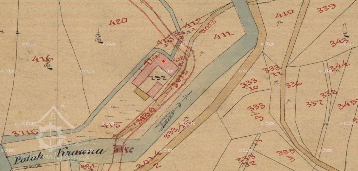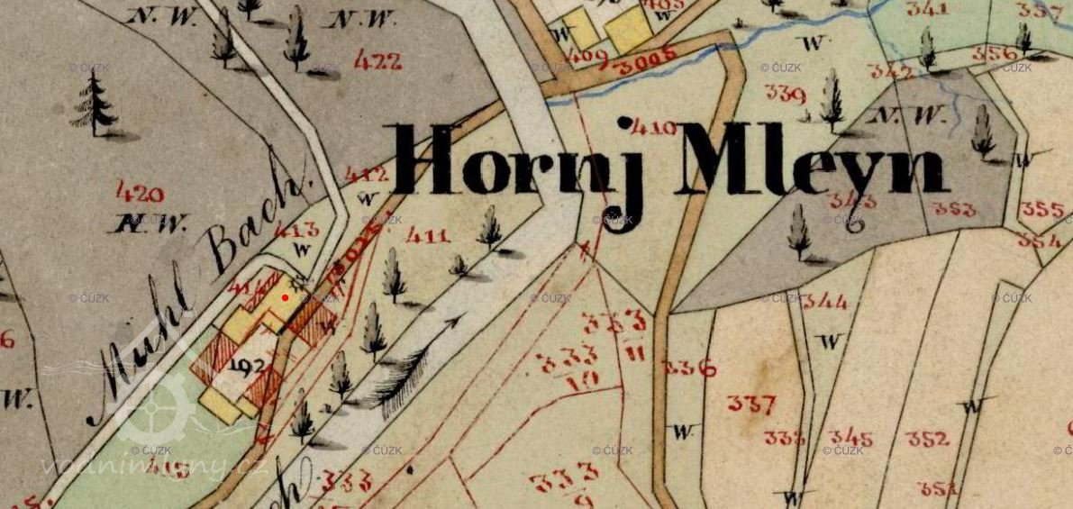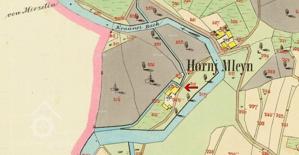 ... ale i tento mlýn existoval jistě před rokem 1764. Původně měl dvě složení s krupníkem a pohon dvěma koly na vrchní vodu o průměru 440 cm.