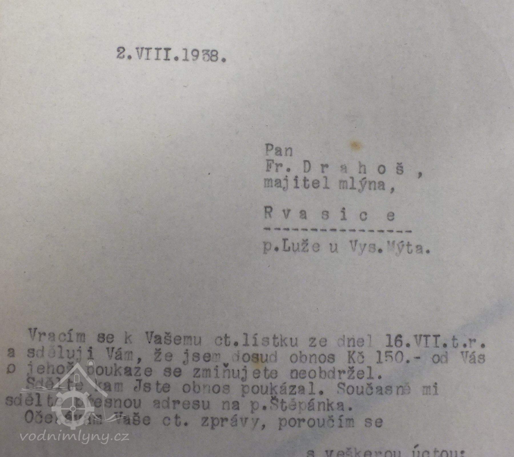 1651 Soupis podaných podle víry - v Rybné uvedeny 2 mlýny: