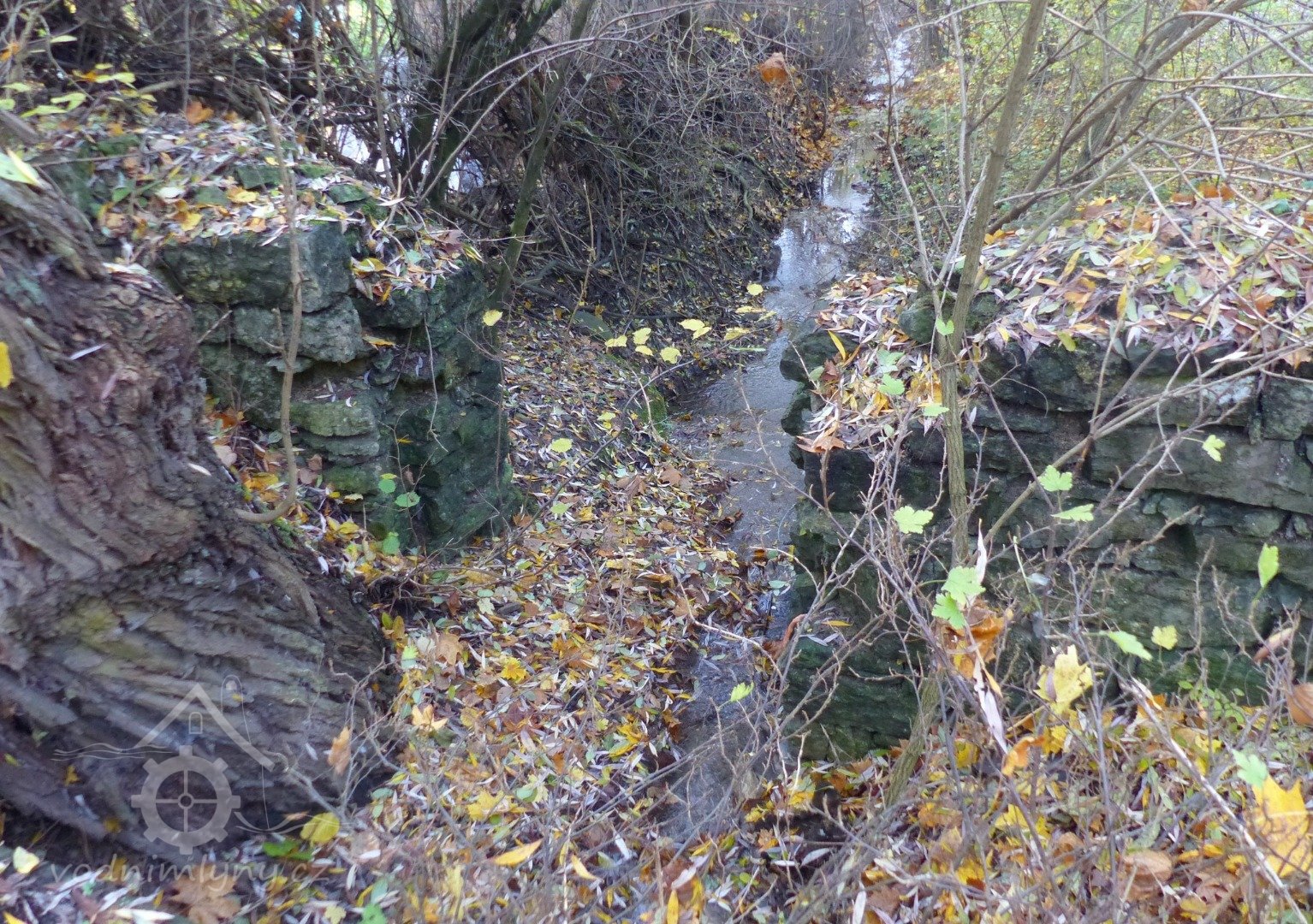 Jeho náhon začínal pod západní částí Červeného lomu. V prvním úseku vede souběžně s tělesem železnice. Dodnes je lemován torzy prastarých hlavatých vrb, tato místa jsou však velmi obtížně přístupná. Po zhruba čtvrt kilometru kříží železnici a směřuje ke mlýnu, stojícímu v atraktivní poloze skalnaté kotliny při soutoku Dalejského a Prokopského potoka. Těsně před ním najdeme zbytky zajímavého technického díla. Náhon zde křížil Klukovický potůček, přitékající od jihovýchodu. Na křížení byla vybudována nádrž (dnes zcela zaniklá), z níž bylo možno vodu pouštět buď ke mlýnu (pokračování náhonu za silnici z Klukovc do Prokopského údolí patrné jako výrazná terasa ve svahu) nebo upouštět původním potůčkem přímo do Dalejského potoka (zachovány zbytky kamenného stavidla).