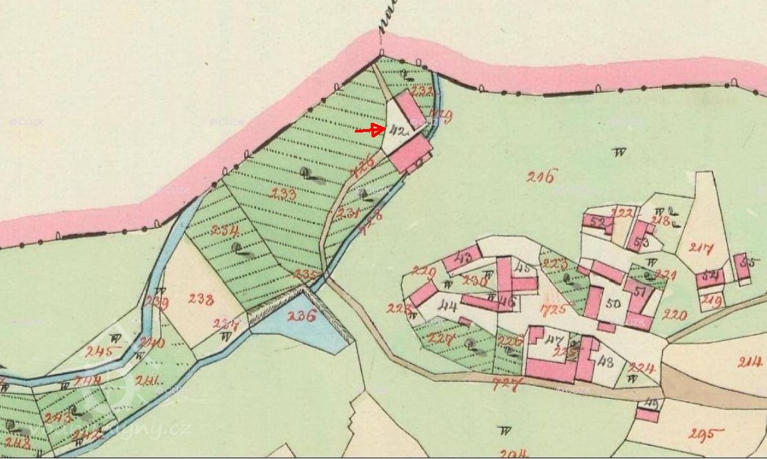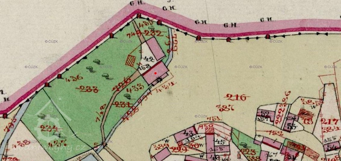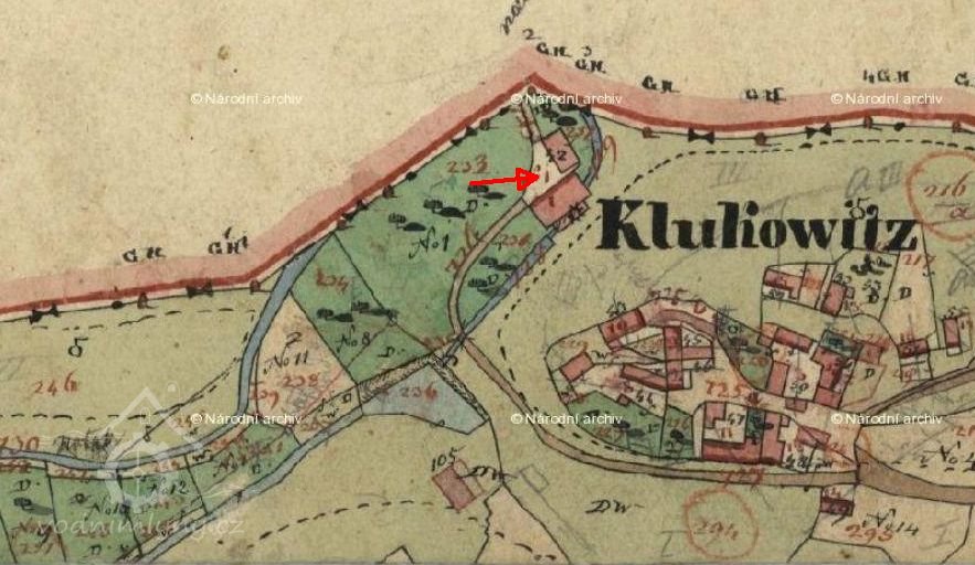 1713 Tereziánský katastr: klukovický mlynář na vlastním mlýně o 1 kole a 1 stoupě na nestálé vodě