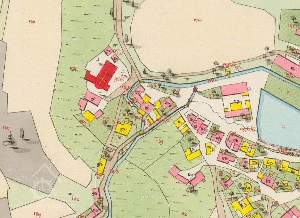 1651 Soupis poddaných podle víry - mlýn Podkostelní: mlynář Jiří (40 let), manželka Alžběta (30), oba cizopanští, dcera Kateřina (17), poddaná, všichni katolíci