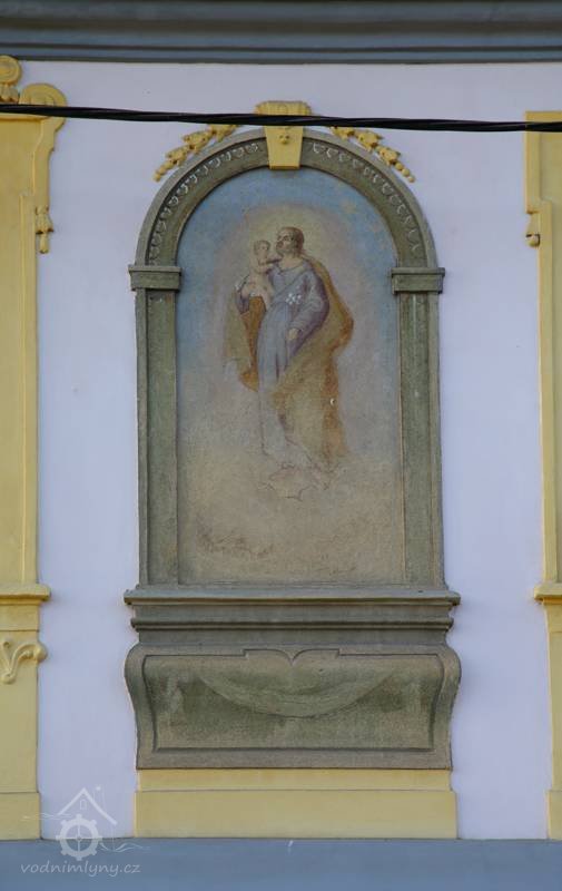 Malba Madony na průčelí, 01 2023, © Vojtěch Klimt, (Prvky na obrázku: malovaná výzdoba fasád a štítů, umělecké prvky (sochy, malby, reliéfy))