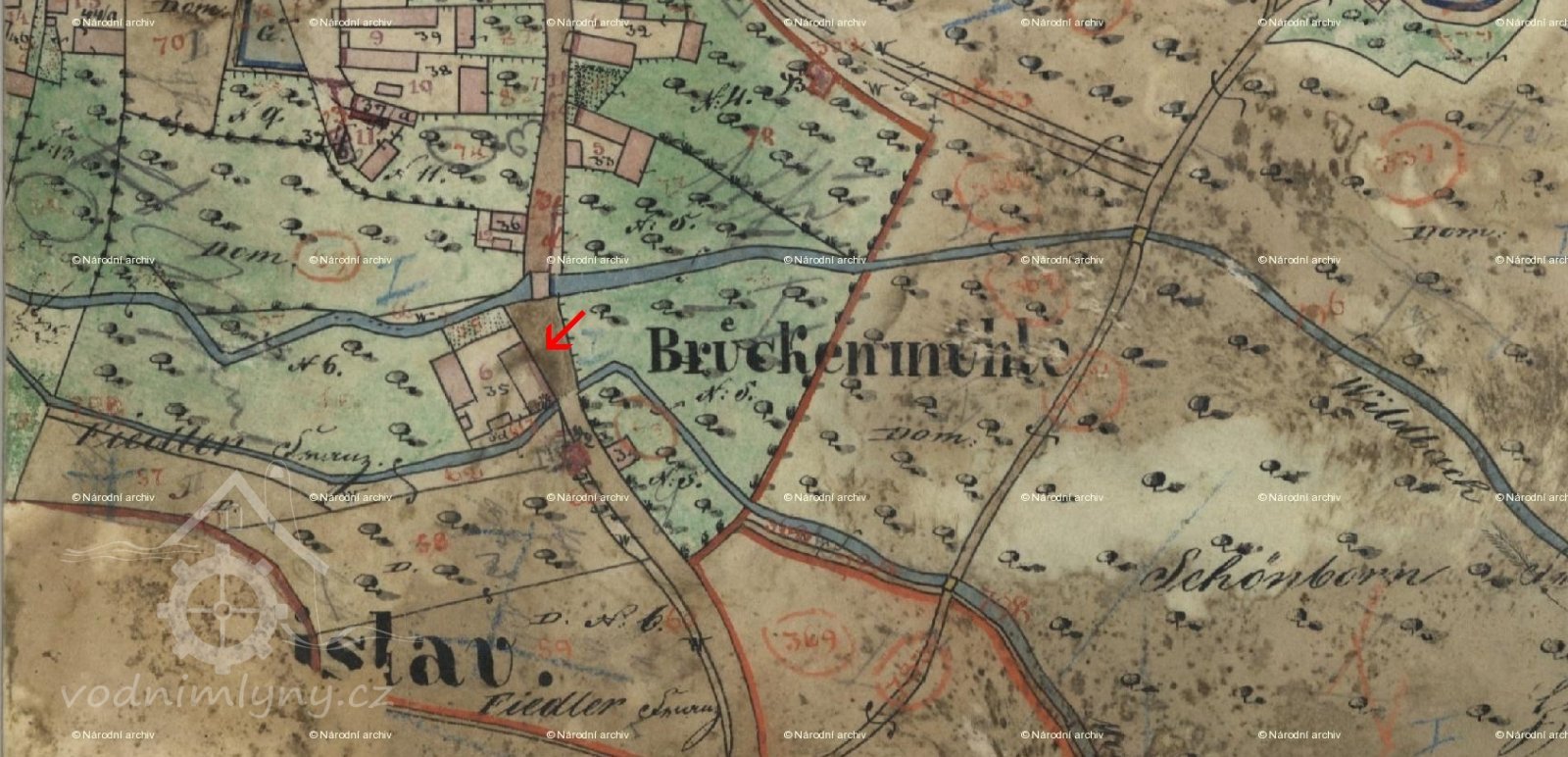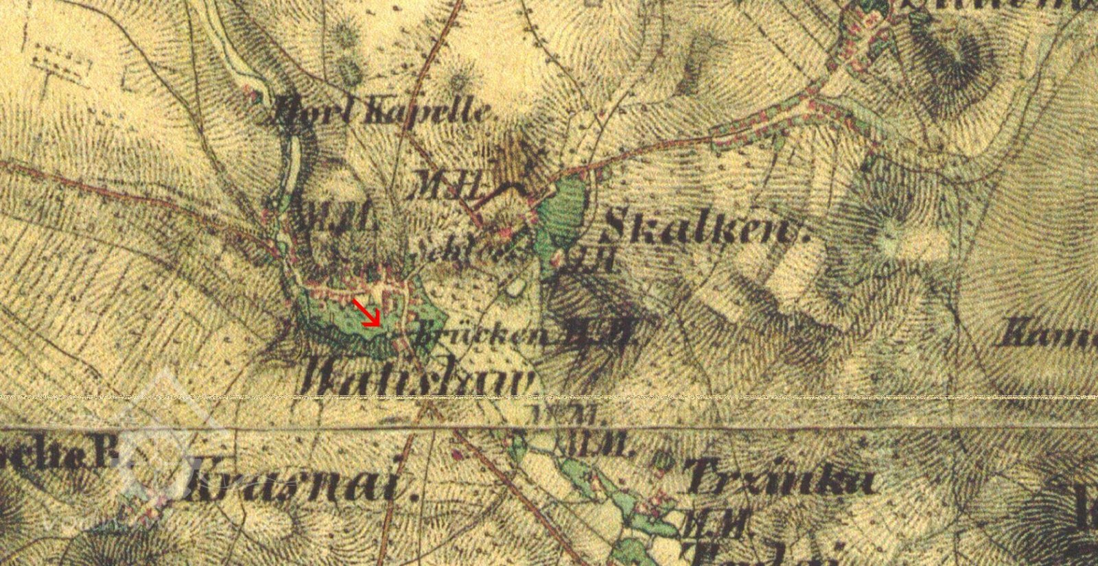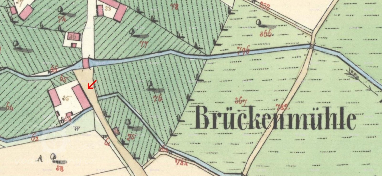 Císařský povinný otisk, výřez, 1843, © viz archivnimapy.cuzk.cz