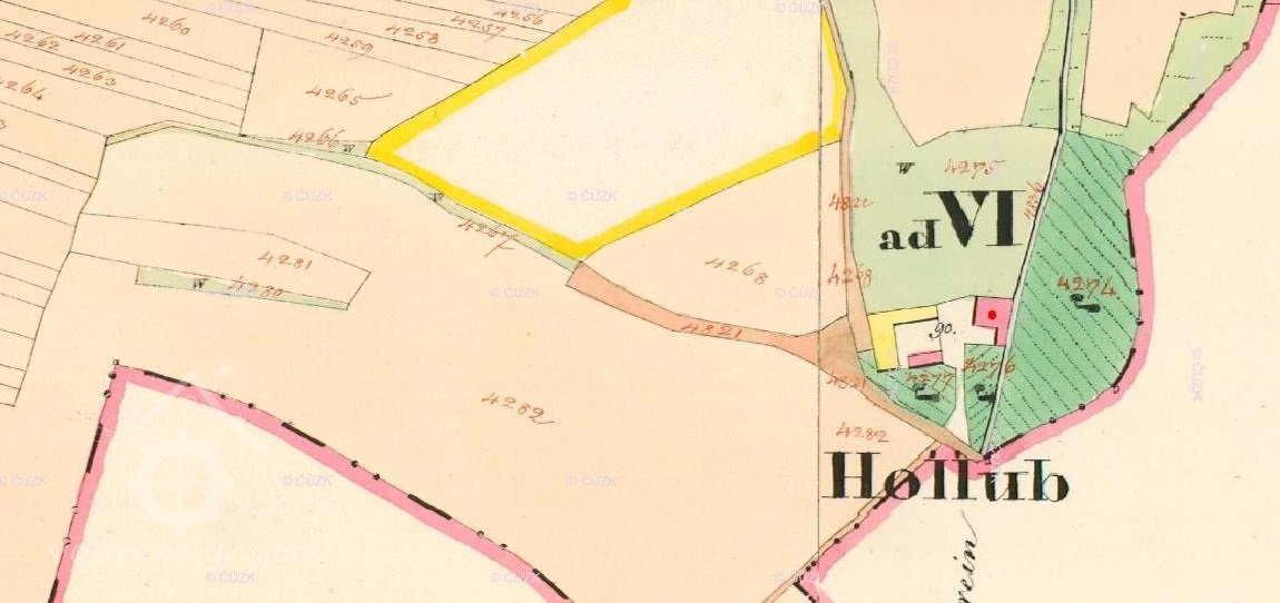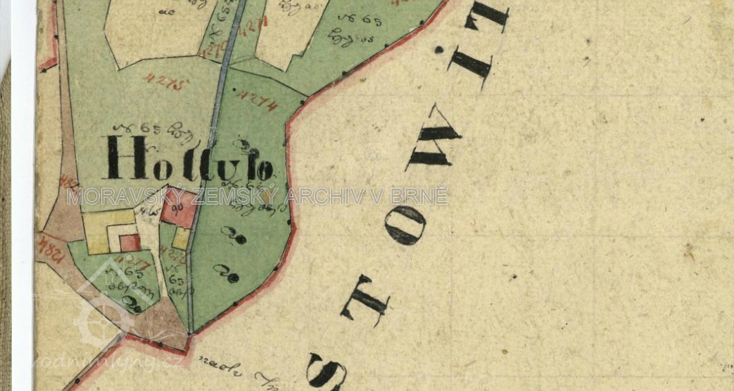 1760 Tereziánský katastr - Cirac (Cyril) Holub, mlýn o 2 složeních s kašíkem (krupníkem), u mlýna 29 měřic polí, do rentového úřadu kláštera Porta Coeli platí 24 zl. ročně
