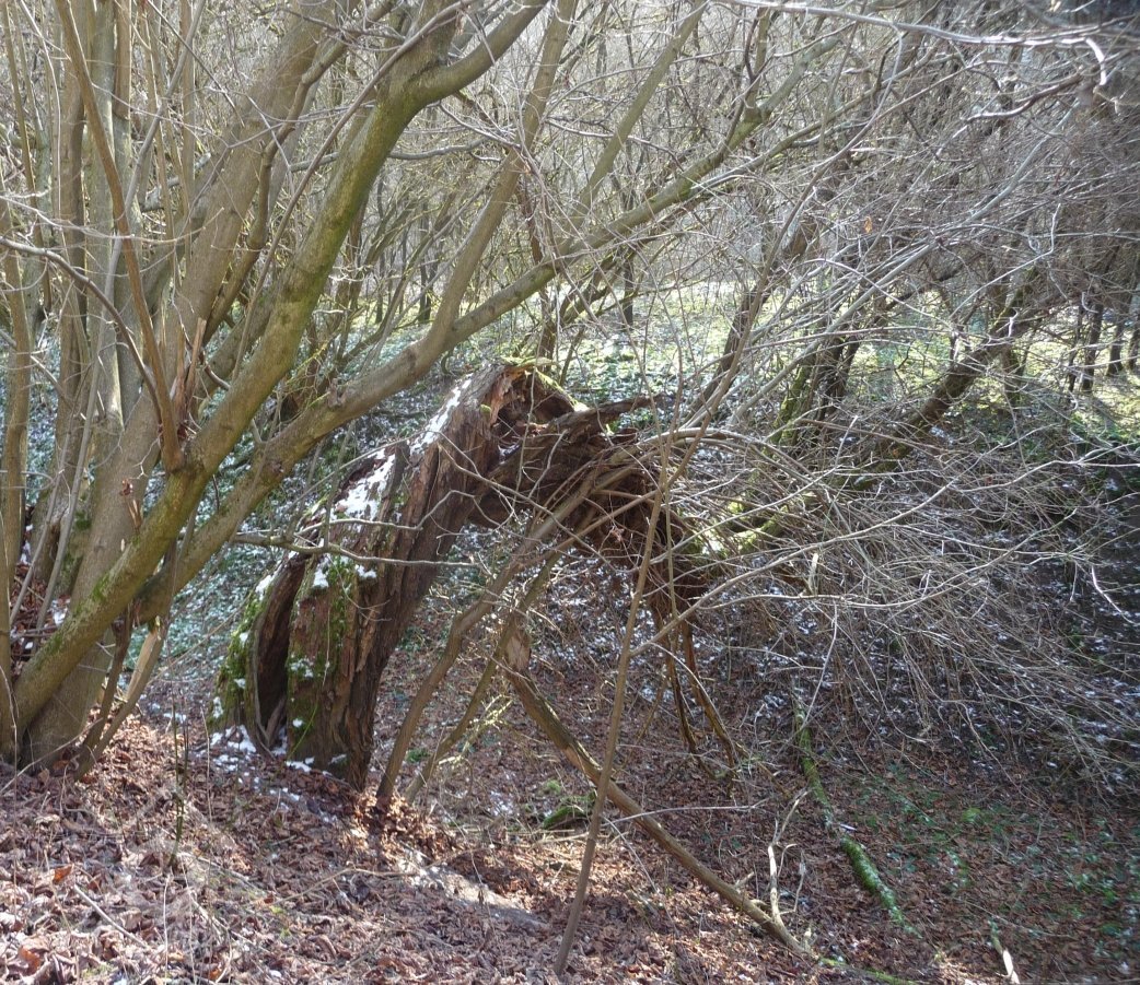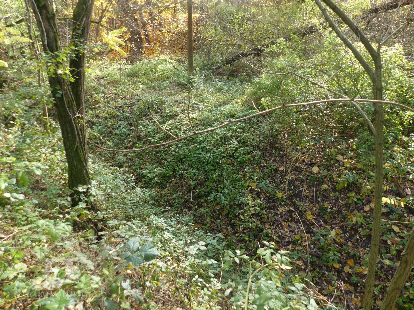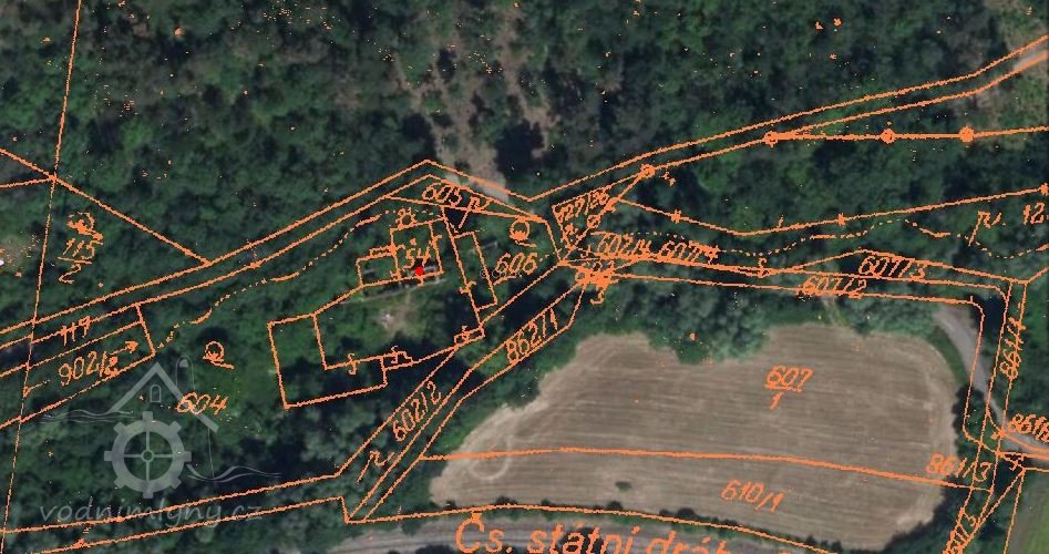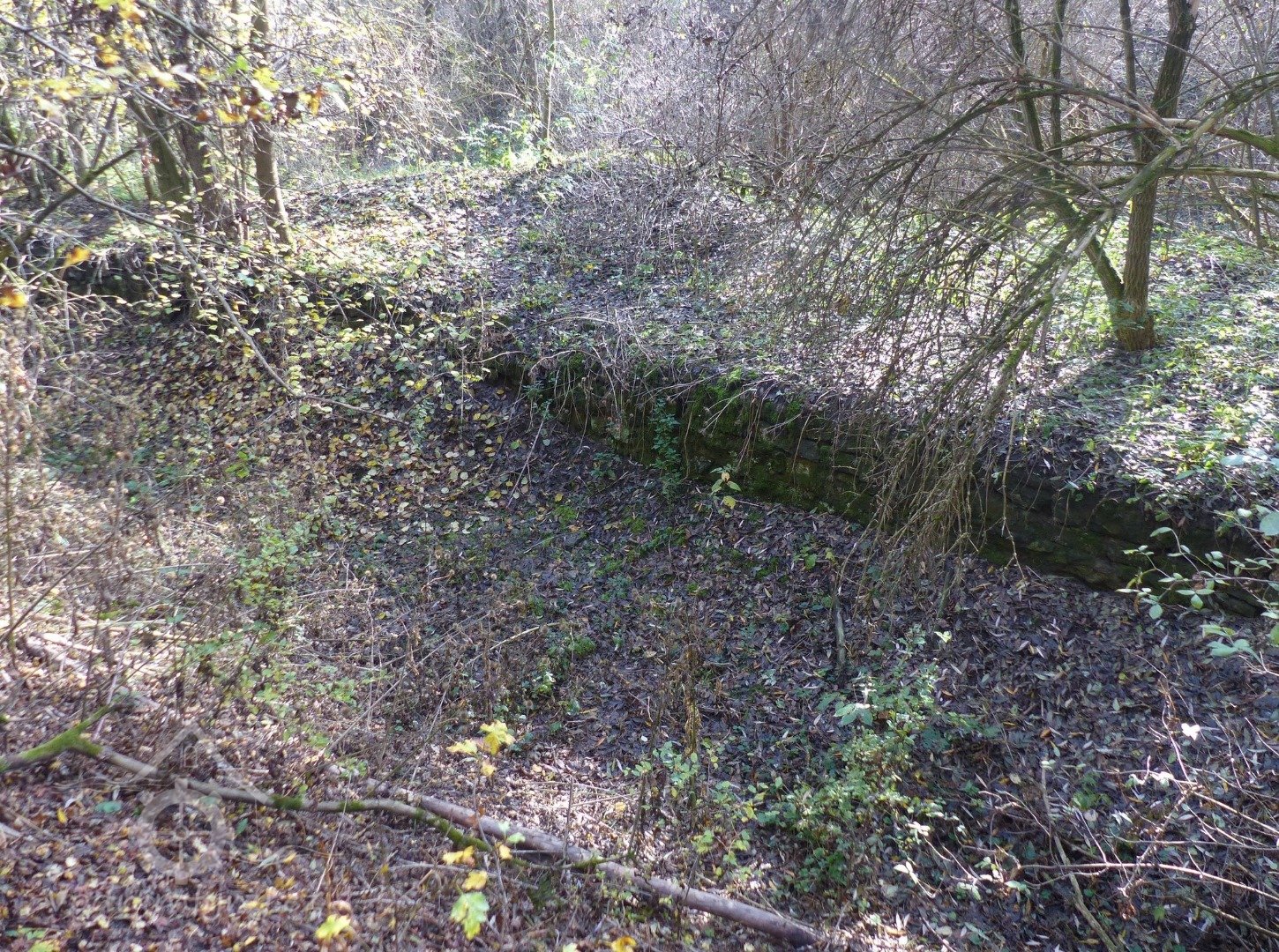 Cca 200 m nad mlýnem jsou patrné zbytky po stavidlu a oddělení náhonu od potoka. Náhon byl mohutný, dnes neudržovaný.