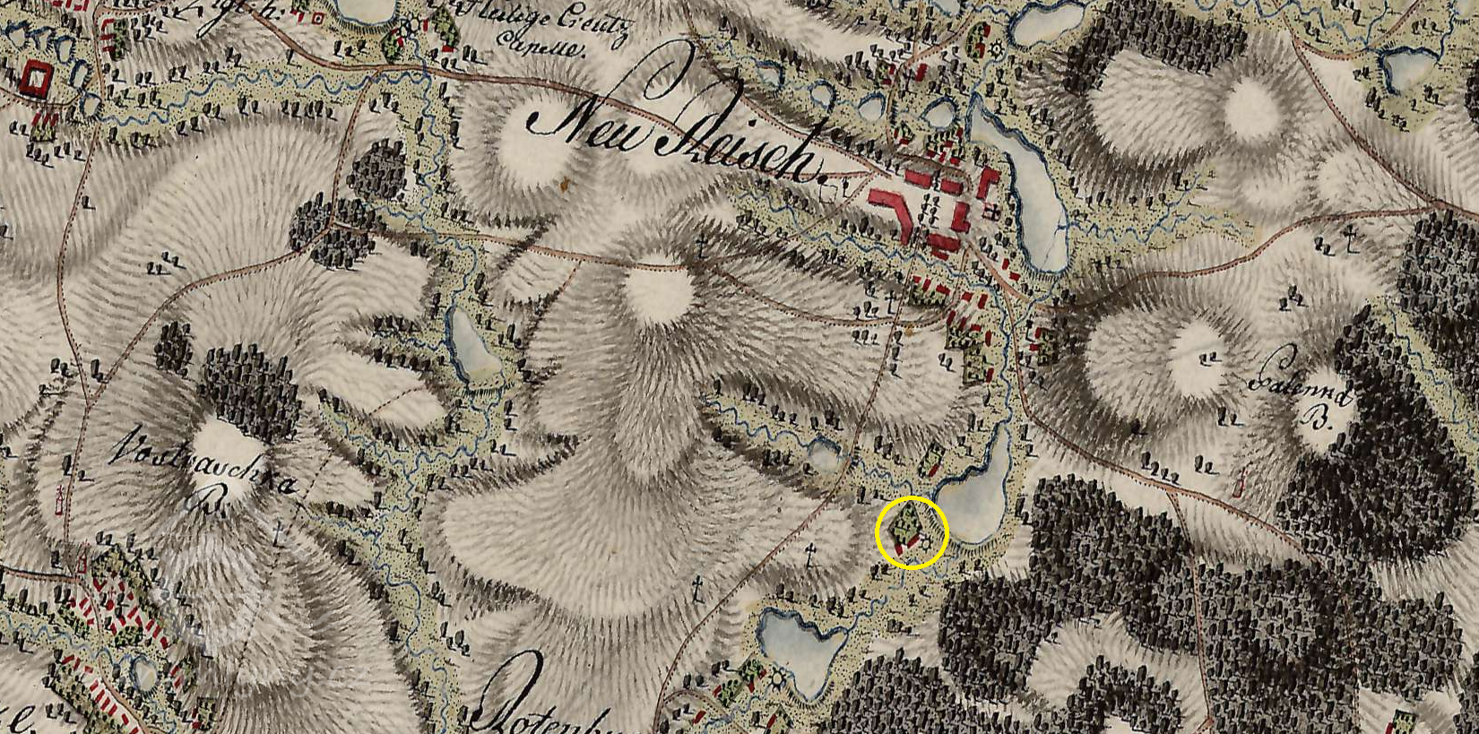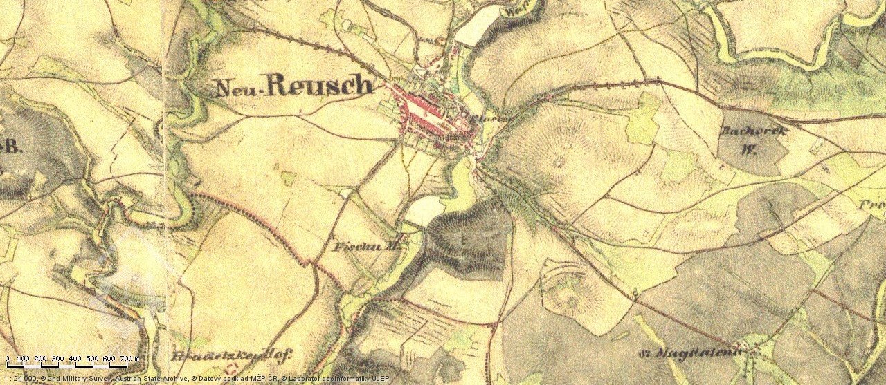 Podle listiny z 9. srpna 1720 Antonín Maria, říšský hrabě z Thurnu a Valsassina, pán na Krasonicích a Zdeňkově ohlašuje prodejní smlouvu, jíž prodává mlynáři pod Novou Říší, Pavlu Píšovi pole, louku a kus lesa za 286 zlatých.
