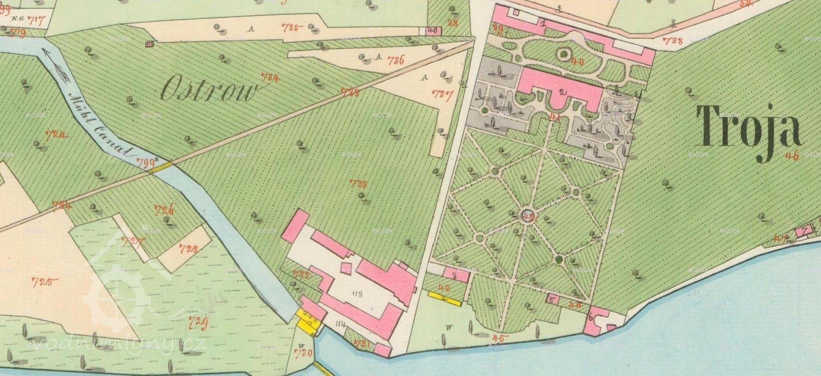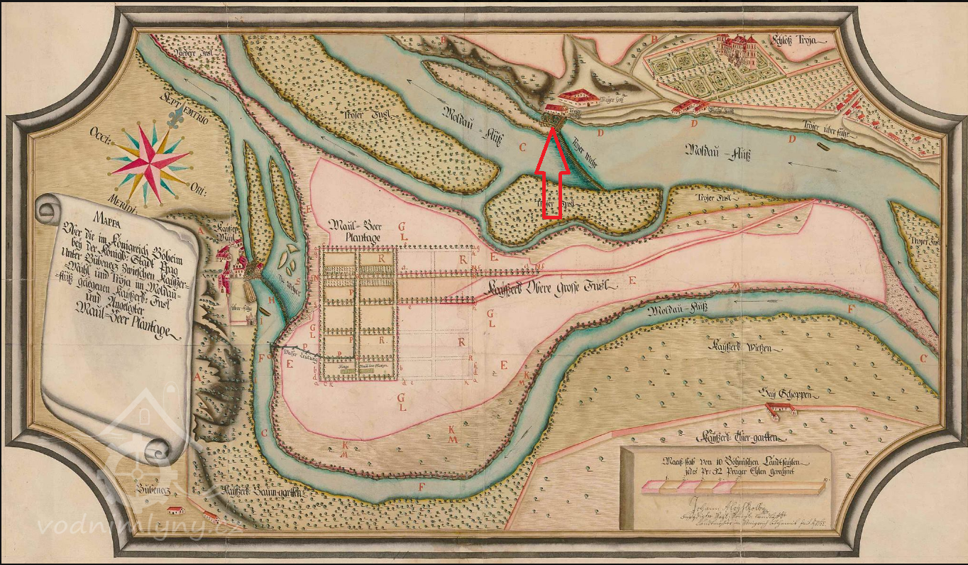1603 Jaroslav Vchynský ze Vchynic, místokomorník království, prodal mlýn s přístupem k řece Vltavě, pilou, štěpnicí, lukami, dědinami, vinicí, platy z vinic a hájem (nikoli však ostrov a prachárnu, odňaté pro rozšíření fořtu bažantího JMC) Alžbětě z Lobkovic