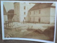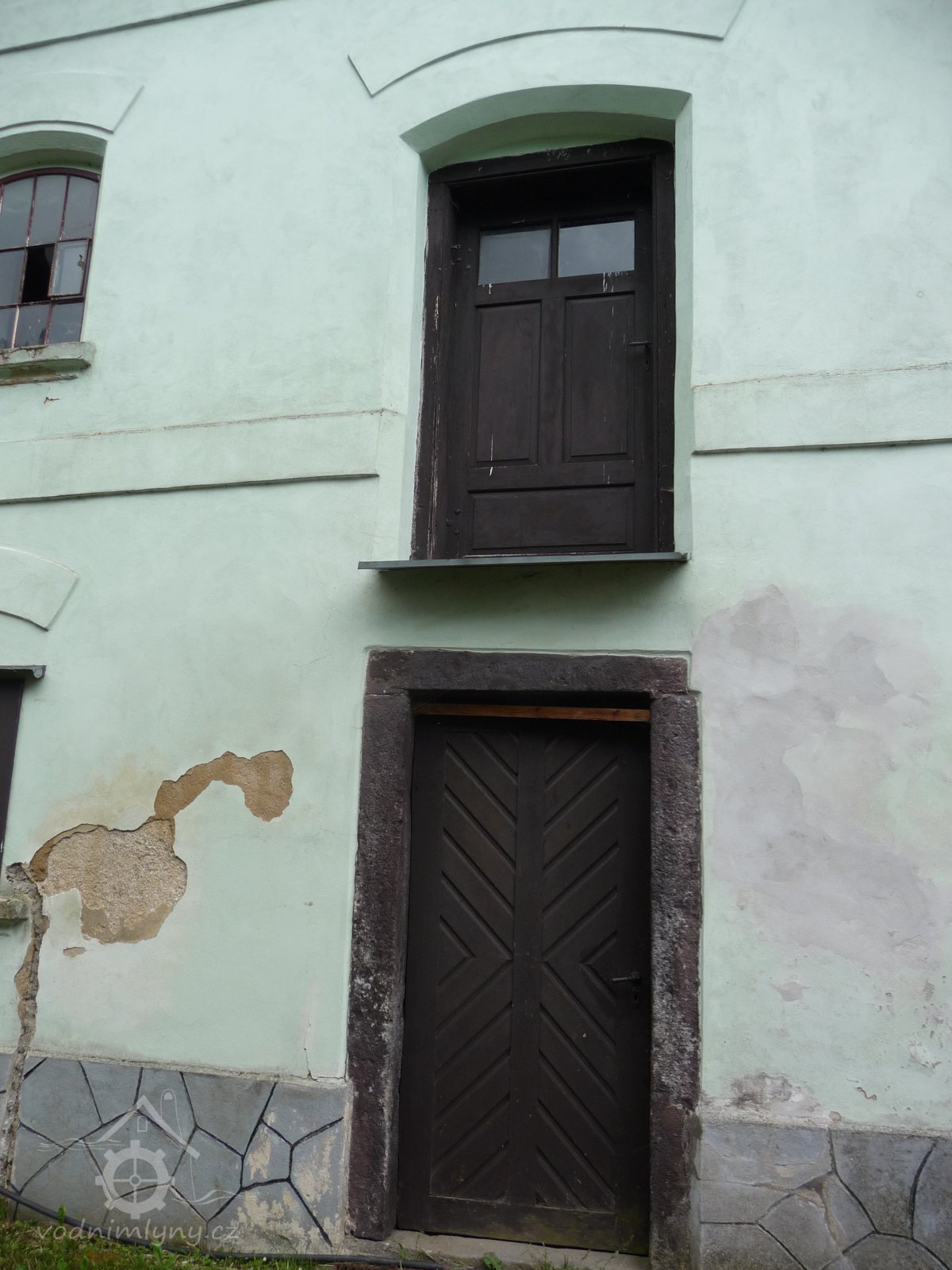 Mlýnic- štít, okna, vyskladňovací otvor, dveře - pohled ze dvora, 2015, © Helena Špůrová, (Prvky na obrázku: dveře, okno, plastická omítková výzdoba fasád a štítů, vyskladňovací otvor)