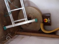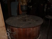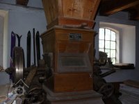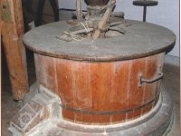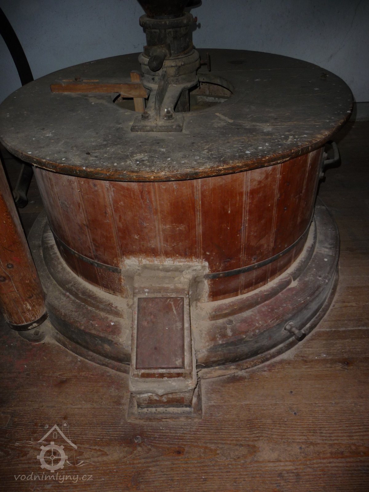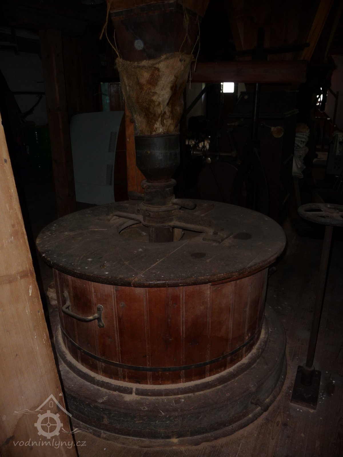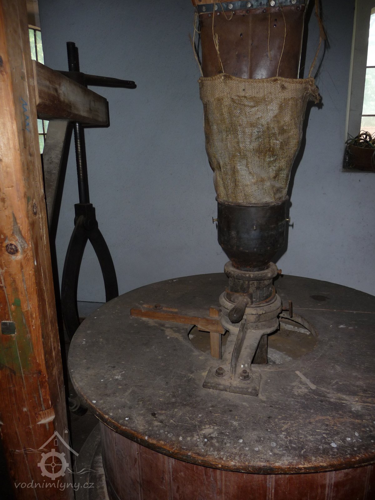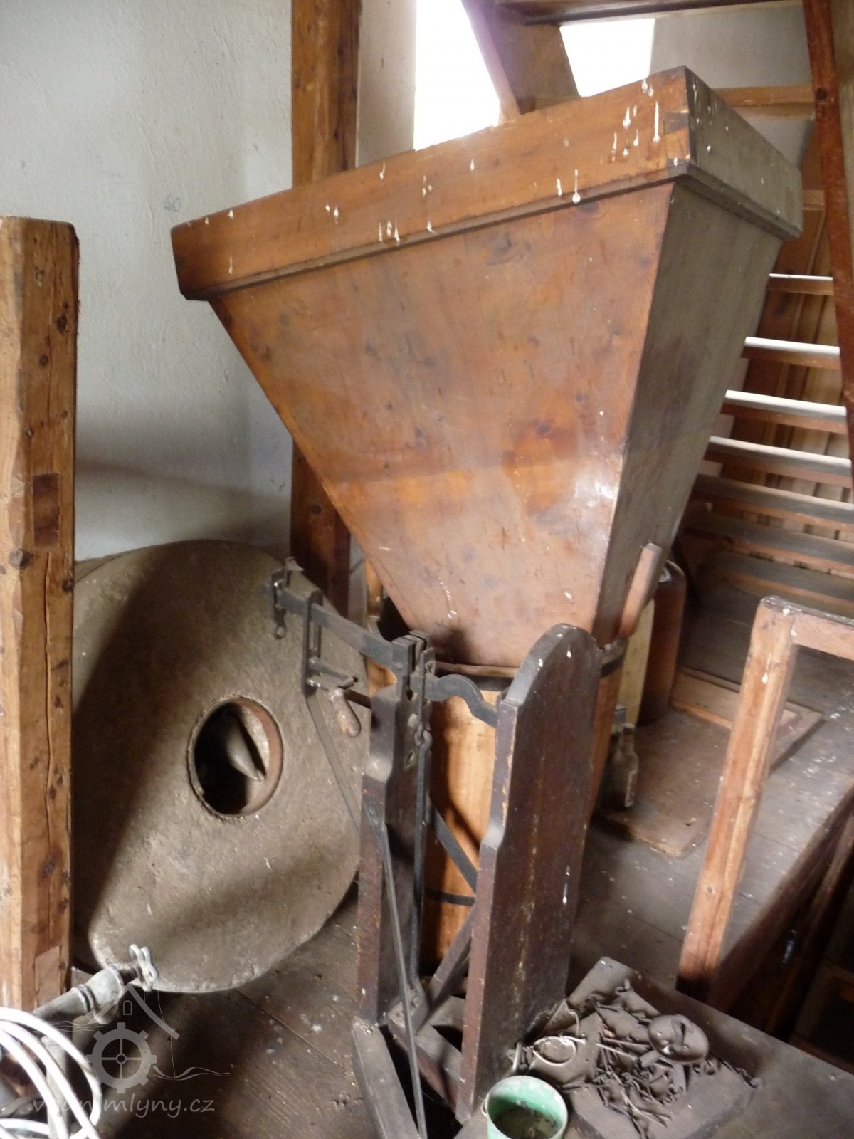 Násypka, mlecí kámen - vyřazené, 2015, © Helena Špůrová, (Prvky na obrázku: mlecí kámen, zásobník, násypka)
