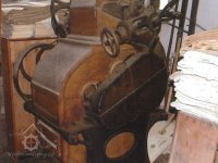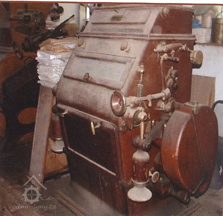 Štítek výrobce, 2015, © Helena Špůrová, (Prvky na obrázku: válcová stolice, značka výrobce na technologickém vybavení)