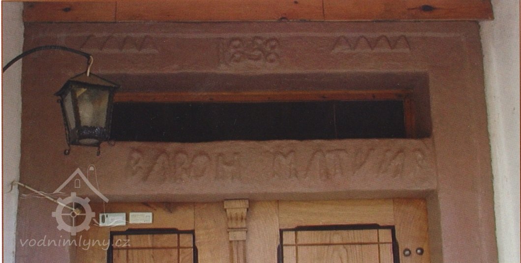 Okna, nápis na mlýnici, 2015, © Helena Špůrová, (Prvky na obrázku: okno, epigrafické památky (nápisy, datování aj.))