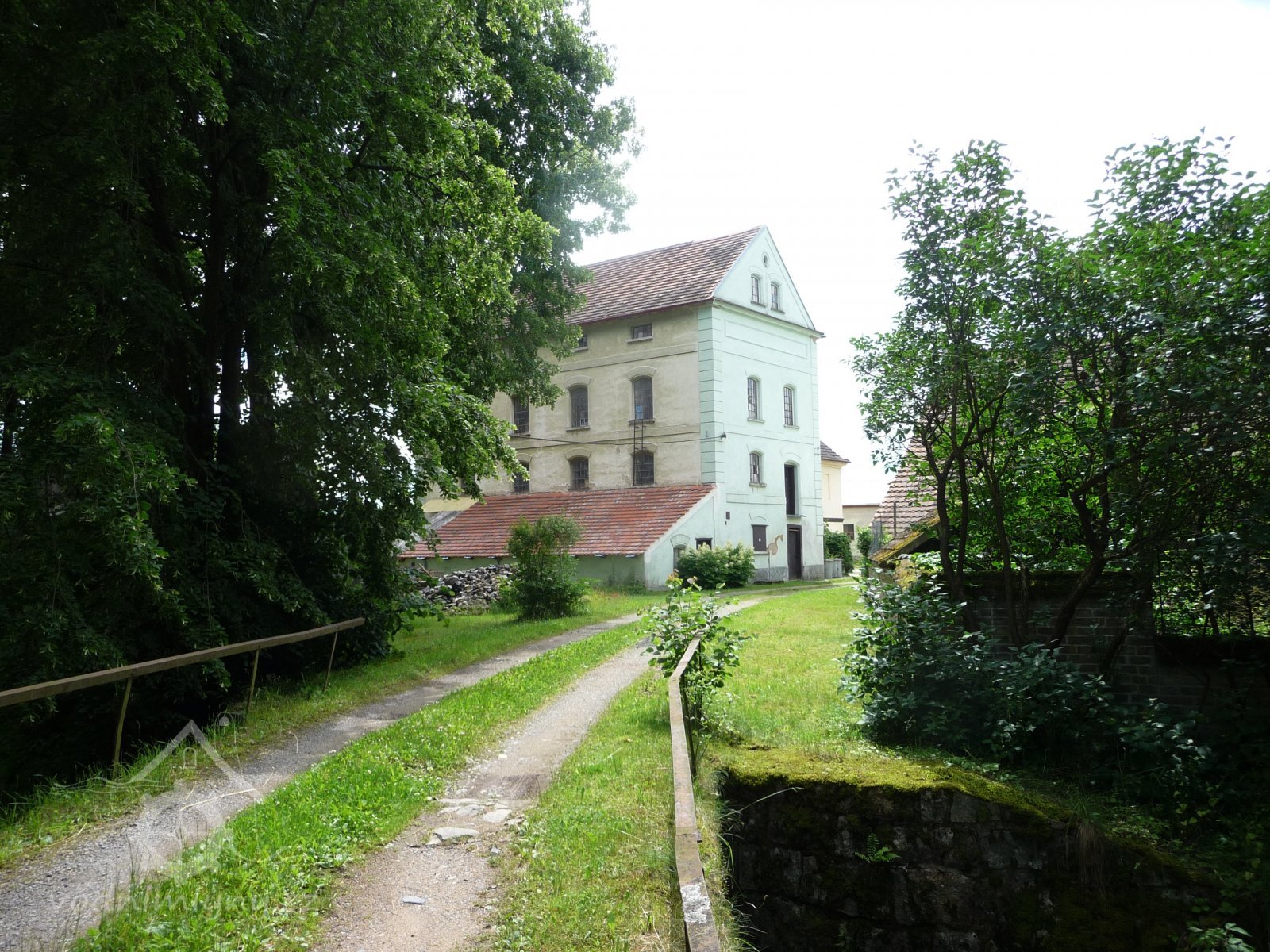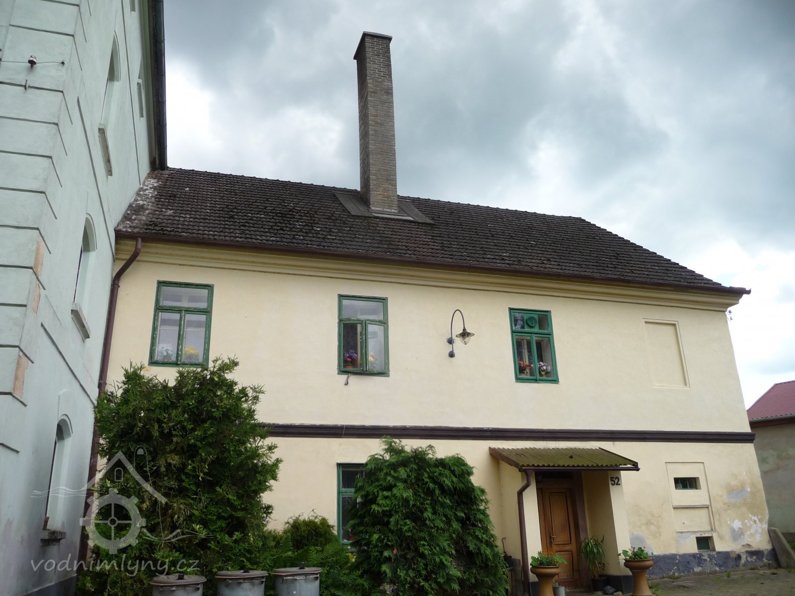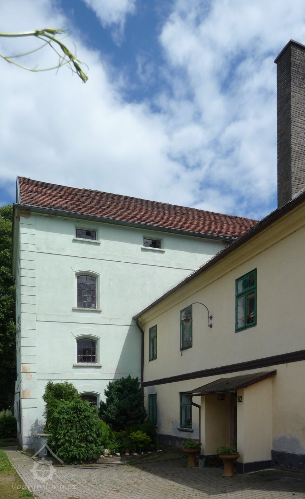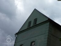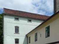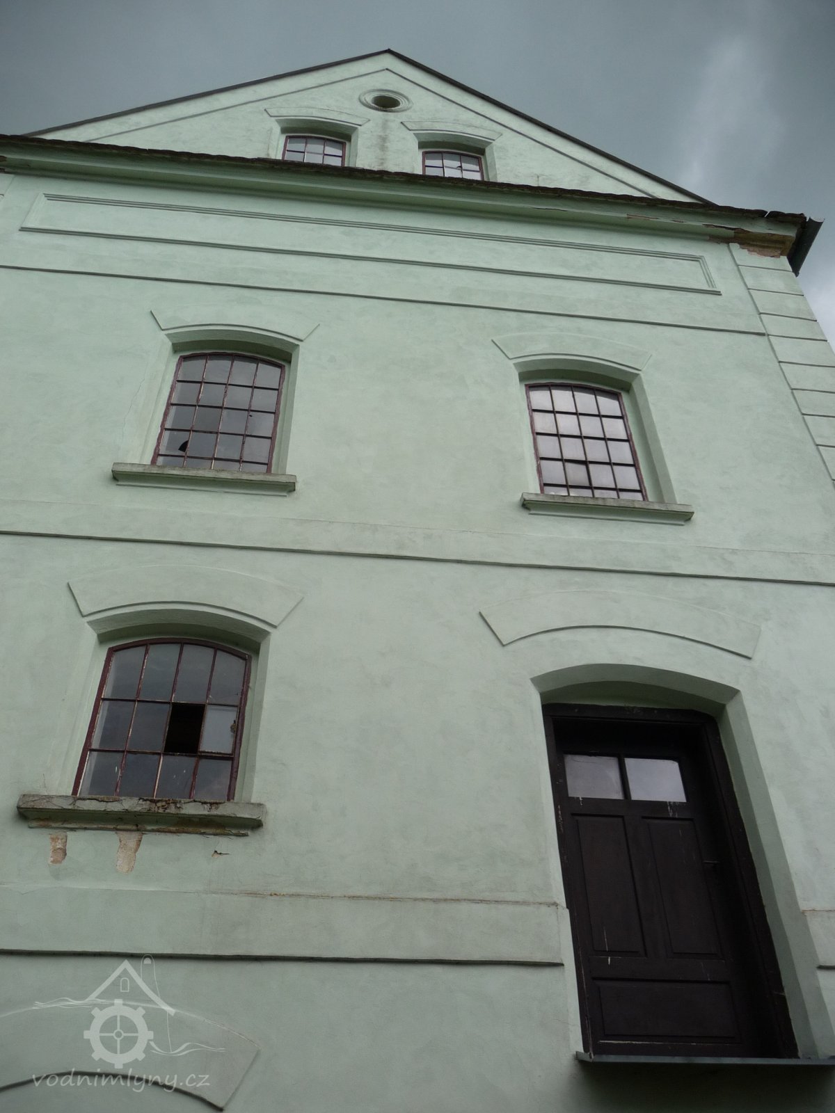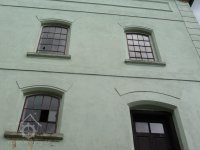 Okna v mlýnici a obytné budově, komín, plastická omítka, 2015, © Helena Špůrová, (Prvky na obrázku: okno, plastická omítková výzdoba fasád a štítů, komín)