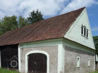 Hospodářská budova - okna, vrata, plastická omítka, datace, 2015, © Helena Špůrová, (Prvky na obrázku: dveře, okno, epigrafické památky (nápisy, datování aj.), plastická omítková výzdoba fasád a štítů)