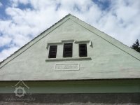 Hospodářská budova - detail datace na štítě, 2015, © Helena Špůrová, (Prvky na obrázku: okno, epigrafické památky (nápisy, datování aj.), plastická omítková výzdoba fasád a štítů)
