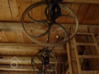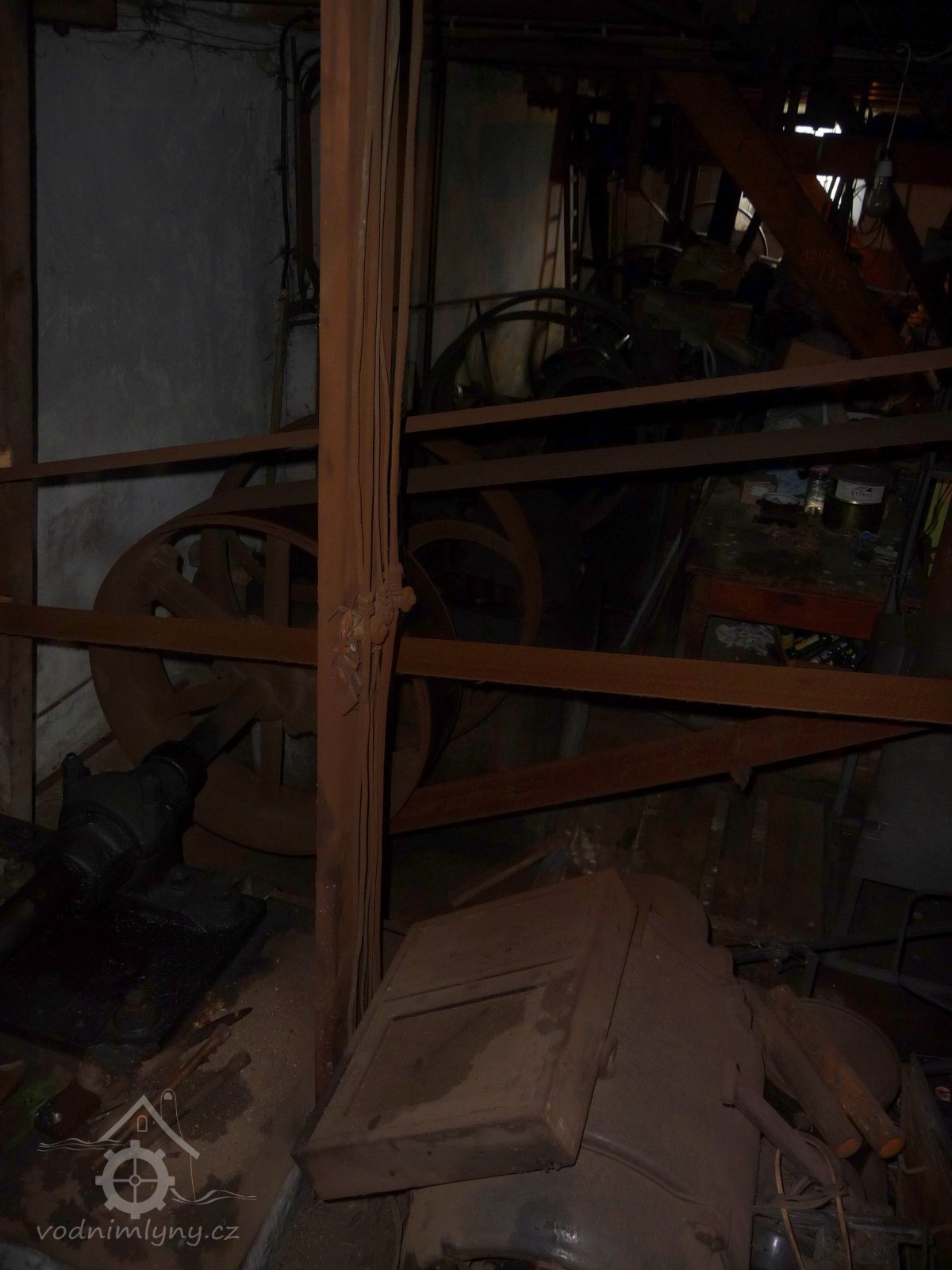 Horní transmise v 2. poschodí, 2011, © Vendula Hnojská, (Prvky na obrázku: transmise, řemenice, převody)